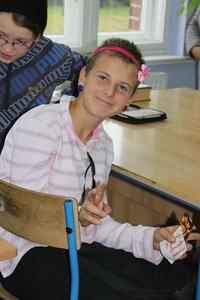 Pierwsza konkurencja:"Jedzenie bitej śmietany". Zadanie wydawało się banalne, ale pamiętajmy, że pozory mylą! Chłopcy bez użycia rąk musieli wylizać bitą śmietanę z uciekających talerzyków. W tej konkurencji brali udział: z kl.I Filip Bąkowski, z kl.II Filip Czajko i z kl.III Jakub Bąkowski. Bezkonkurencyjnym zwycięzcą okazał się Filip Bąkowski.