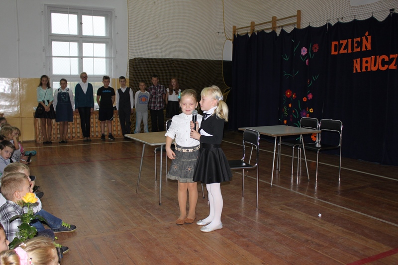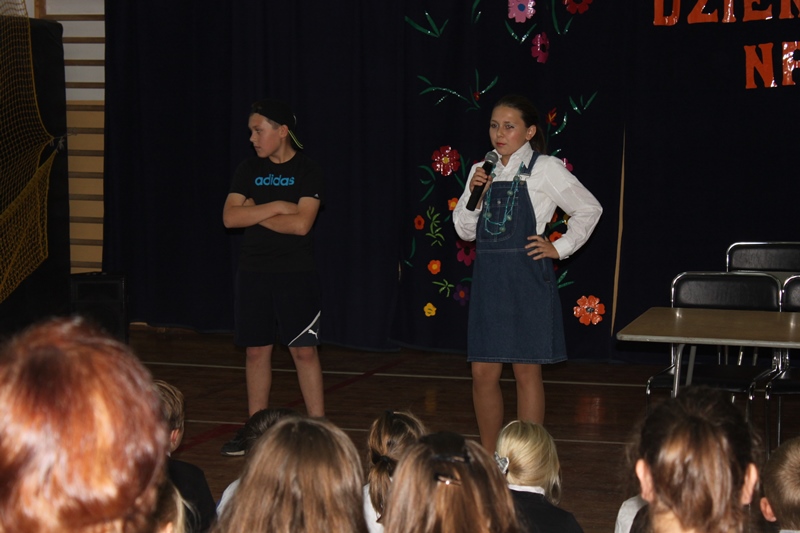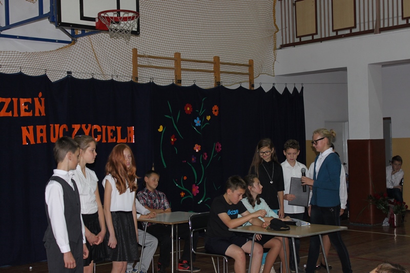 „Dzisiejsze święto jest wyjątkowe i na dodatek bardzo oczekiwane. Na to święto z niecierpliwością czekają zarówno uczniowie, jak i nauczyciele. Tego dnia nasze koleżanki i nasi koledzy bardziej przypominają aniołki niż diabełki. Bo na co dzień, to różnie bywa…” – takimi słowami rozpoczął się Dzień Nauczyciela w naszej szkole, zorganizowany przez Samorządy Uczniowskie szkoły podstawowej i gimnazjum.