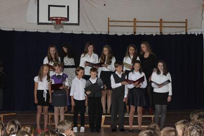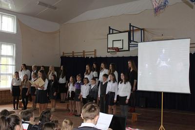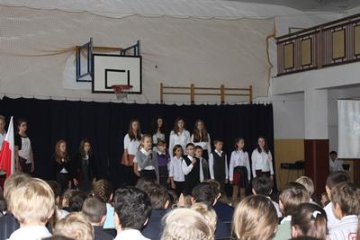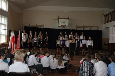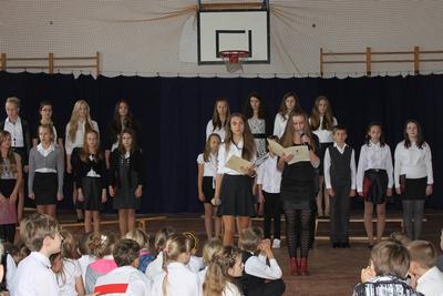 Na koniec wszyscy odśpiewali nasz państwowy hymn „Mazurek Dąbrowskiego” i wrócili na dalsze godziny lekcyjne.
