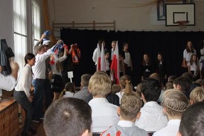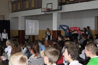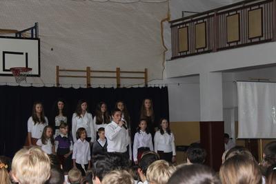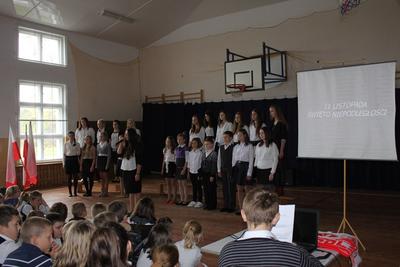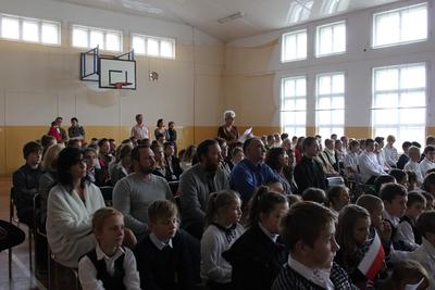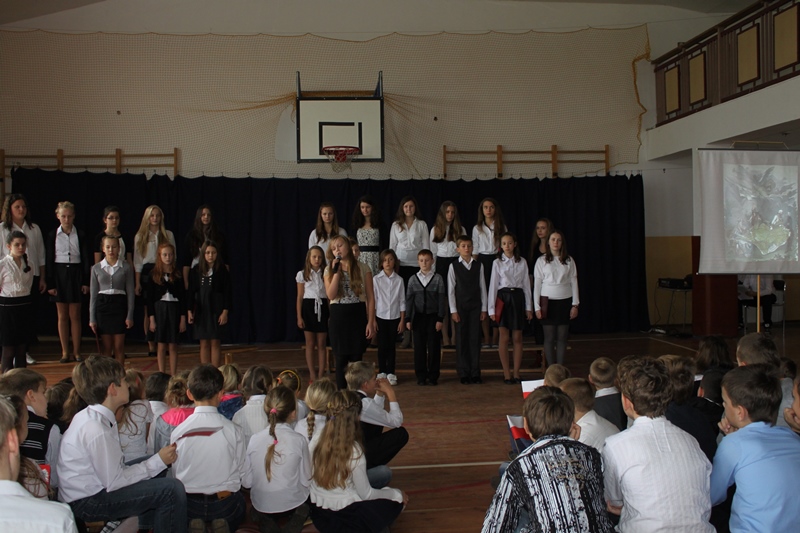 10.00 wszyscy zgromadzili się na sali gimnastycznej, gdzie odbył się apel z okazji tego święta.