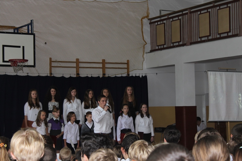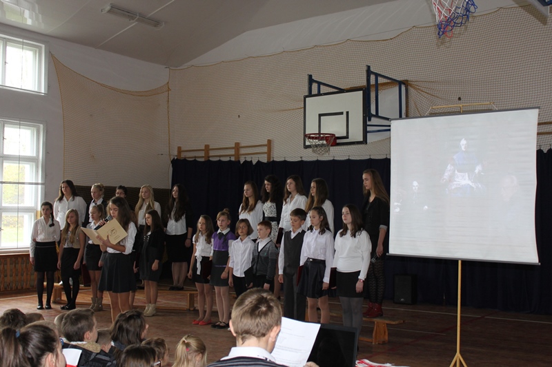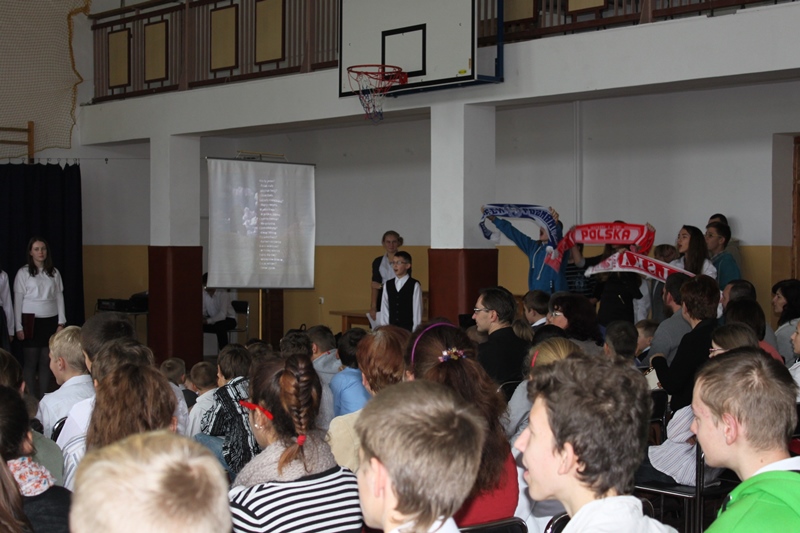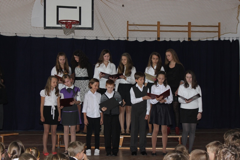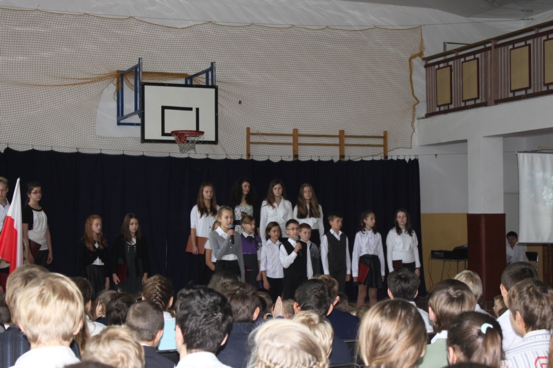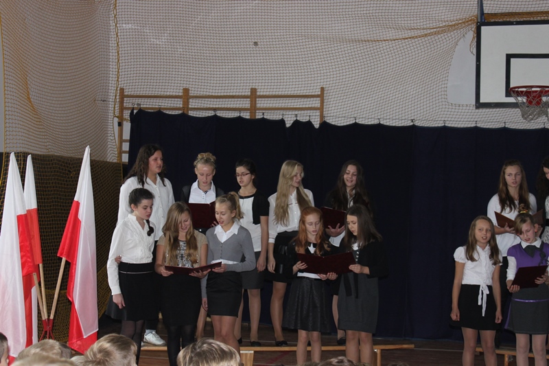 Pod opieką pani Barbary Pisowodzkiej i Alicji Cieślak uczniowie klas gimnazjalnych oraz podstawowych w części artystycznej przybliżyli nam historię naszego kraju – czasów, gdy Polska utraciła niepodległość i zniknęła na 123 lata z map Europy. Cała uroczystość poprowadziły uczennice klas gimnazjalnych Magda i Wiktoria.