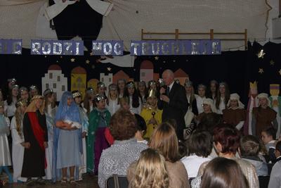 Po przedstawieniu głos zabrał Dyrektor Sławomir Szymański oraz Wójt Gminy Bolesław Chwarścianek, życząc wszystkim zdrowych, spokojnych i rodzinnych Świąt Bożego Narodzenia oraz udanej i bezpiecznej przerwy świątecznej.