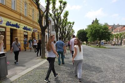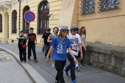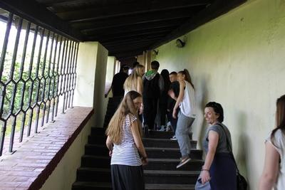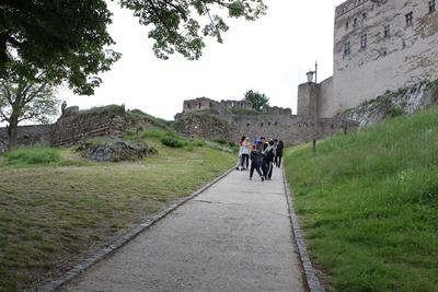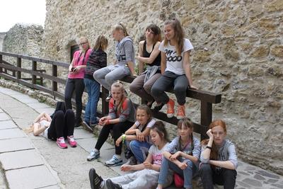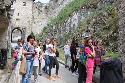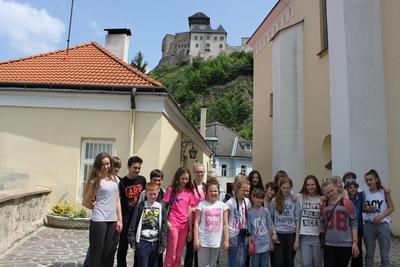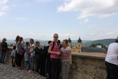 Wizytę na Słowacji rozpoczęliśmy w Trencinie, gdzie powitali nas nauczyciele z Presel’an. Po „małej” godzince (wykorzystanej na zakupy i obiad), zabrali nas do zamku. Co prawda, bardzo musieliśmy się do niego wspinać, ale widoki zapierały dech w piersiach. Zamek w Trencinie jest trzecim, co do wielkości, zamkiem na Słowacji, więc było co zwiedzać. Wszyscy byliśmy zachwyceni cudnymi widokami i …parą kóz, które nie zwracały na nas uwagi i spokojnie gryzły sobie trawkę.