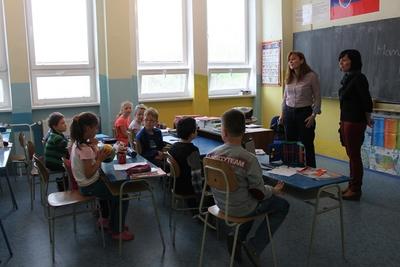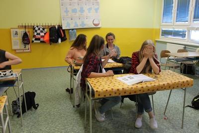 Następny dzień uczniowie spędzili na zajęciach w szkole. W tym czasie my, nauczyciele, zostaliśmy oprowadzeni przez gospodarzy po wszystkich klasach i pomieszczeniach - mieliśmy okazję zobaczyć, w jaki sposób prowadzone są lekcje (szczególnie zaskoczyły nas kalkulatory używane przez uczniów na matematyce; drodzy Uczniowie – może zaproponujecie to pani Karolinie? :D), jak pięknie piszą małe dzieciaczki w zeszytach bez wąskich linii; pozazdrościliśmy pracowni technicznej (z imadłami, pilnikami i śrubokrętami) i… ciszy w stołówce szkolnej, w której jedliśmy obiad w tym samym czasie, gdy na posiłek przyszły małe dzieci (chyba z klasy 1, ewentualnie 2). Wszystkie maluchy grzecznie stały w kolejce, nie krzyczały do siebie, a po prostu rozmawiały, nie biegały, tylko chodziły. Można? Można. Spodobała nam się również dbałość uczniów o stoliki, na których leżały ceraty, żeby nie zniszczyć blatu. Bardzo dobry pomysł.