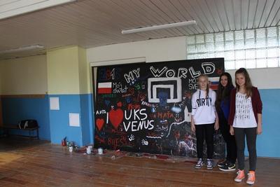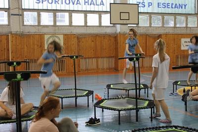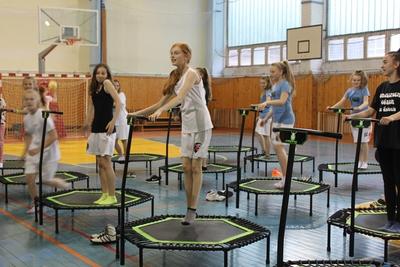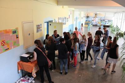 Po lekcjach nastąpiła integracja młodzieży polsko-słowackiej. Nauczyciele przygotowali dla nich zajęcia plastyczno-techniczne. Uczniowie mogli malować na ogromnej desce wszystko, co kojarzyło im się z życiem i marzeniami, bowiem temat dotyczył ich świata. Wielkim powodzeniem cieszyła się „produkcja” breloczków ze skóry oraz robienie koszulek z własną podobizną. Bryndzowych haluszek (tradycyjnego słowackiego dania, czyli małych klusek ziemniaczano-mącznych, gotowanych w osolonej wodzie i podawanych z bryndzą, stopioną słoniną i skwarkami), przygotowanych przez uczennice, próbowałam osobiście. Były pyszne! Potem dziewczyny z obu szkół wzięły udział w trampolinowym fitnessie. Trudno było się oprzeć pokusie poskakania, więc każda z nas (nauczycielek) troszkę „pofitnessowała”. Widok musiałyśmy stanowić ciekawy na tyle, że p. Karolina ze skakania zrezygnowała, za to uwieczniła wszystko na zdjęciach.