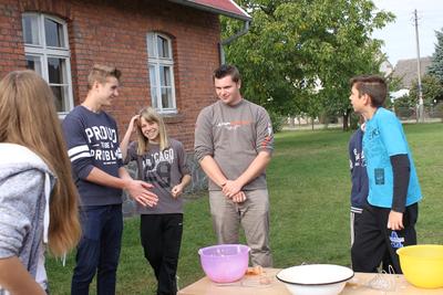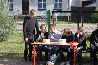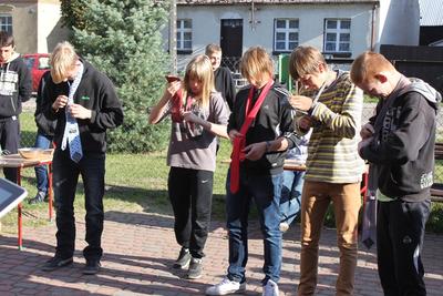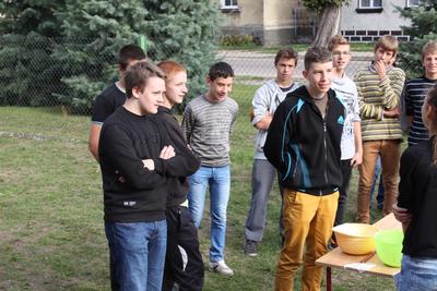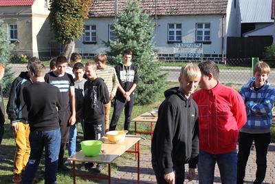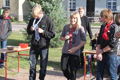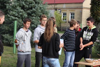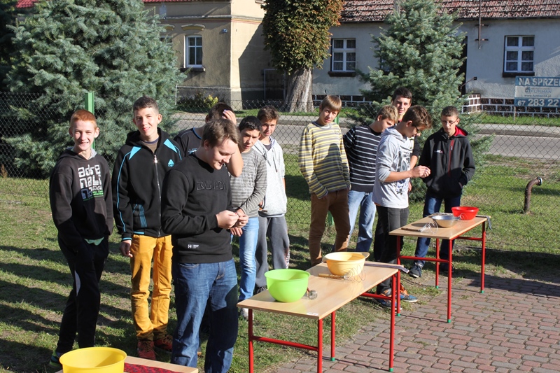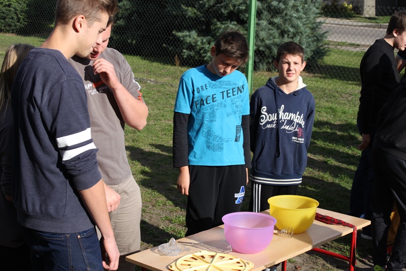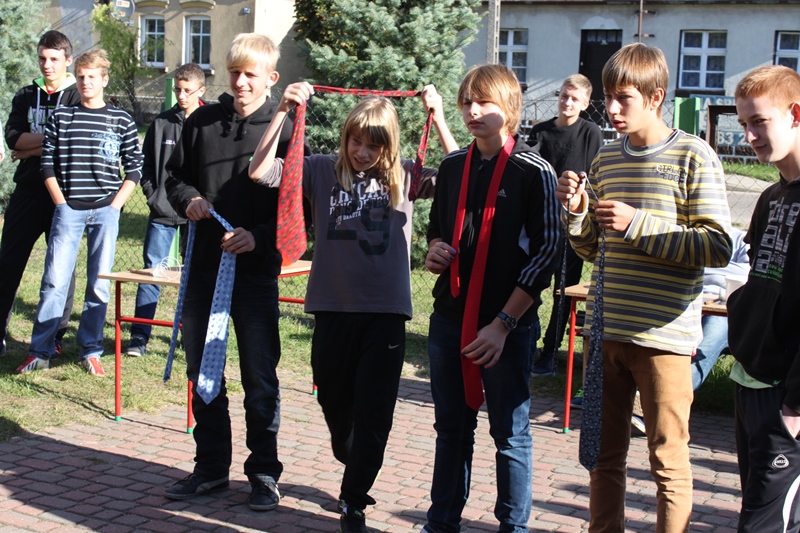 W środę 30. września odbył się w naszej szkole Dzień Chłopaka. Chłopcy byli podzieleni na 5 drużyn. Brali oni udział w różnych konkurencjach min. ubijaniu jajek, wiazaniu krawata, przekładania nitki przez igłę, quizu przyrządów kuchennych. Wszyscy poradzili sobie bardzo dobrze, choć nie brakowało wpadek. Chłopcy stworzyli również nowy styl wiązania krawata, a mianowicie MĘSKI ZWIS. W owym dniu była również poprzez pytania sprawdzana inteligencja naszych chłopców. Nasi mężczyźni odpowiedzieli prawie na wszystkie pytania. Możemy być dumni. Na koniec wszyscy chłopcy dostali słodki upominek. Jeszcze raz życzymy naszym chłopcom wszystkiego najlepszego!!! 😀