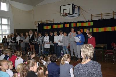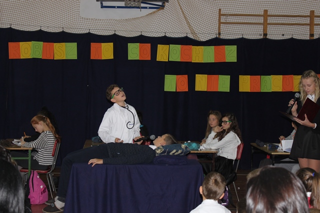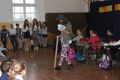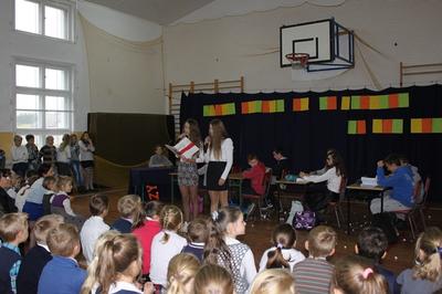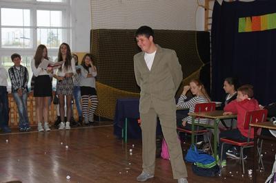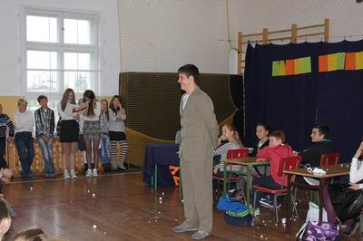 Z okazji dnia edukacji narodowej w naszej szkole odbyła się akademia poświęcona między innymi naszym nauczycielom. Klasa VI szkoły podstawowej przedstawiła kilka zabawnych scenek z życia szkoły. Następnie odbył się pokaz mody nauczycielskiej. Na wybiegu pojawiły się kreatywne stroje nauczycieli matematyki, przyrody, historii, j.polskiego, plastyki, nauczania zintegrowanego, informatyki i przede wszystkim strój dyrektora. Następnie klasa III Gimnazjum zagrała z naszymi nauczycielami w siatkówkę. Po ciężkiej walce nasi uczniowie pokonali nauczycieli 2:1. Na szczęście obyło się bez żadnych kontuzji. Po rozegranym meczu uczniowie wraz z wychowawcami udali się do swoich klas. Z okazji tego dnia w imieniu uczniów naszej szkoły chcielibyśmy złożyć serdeczne życzenia wszystkim nauczycielom i pracownikom szkoły.