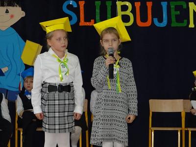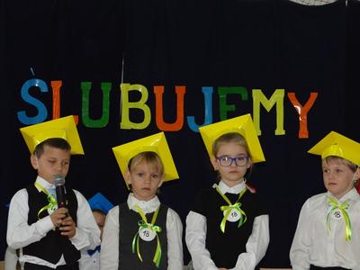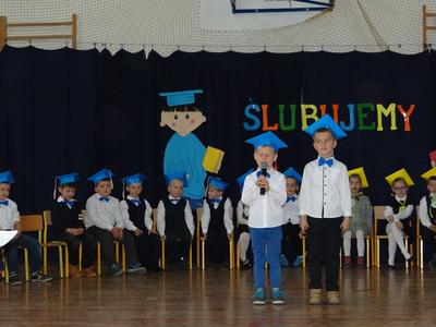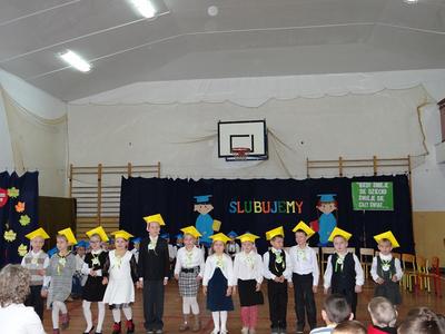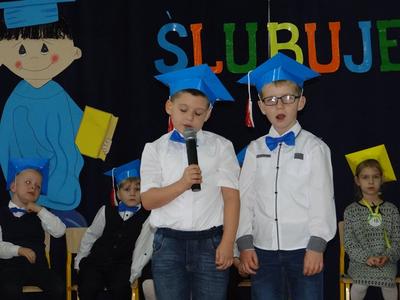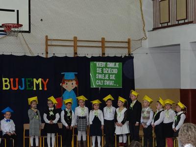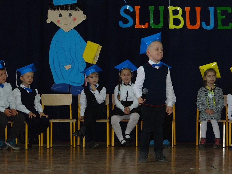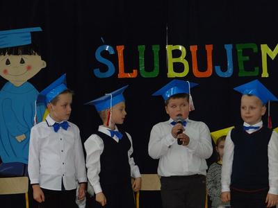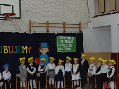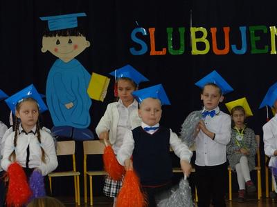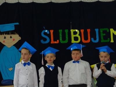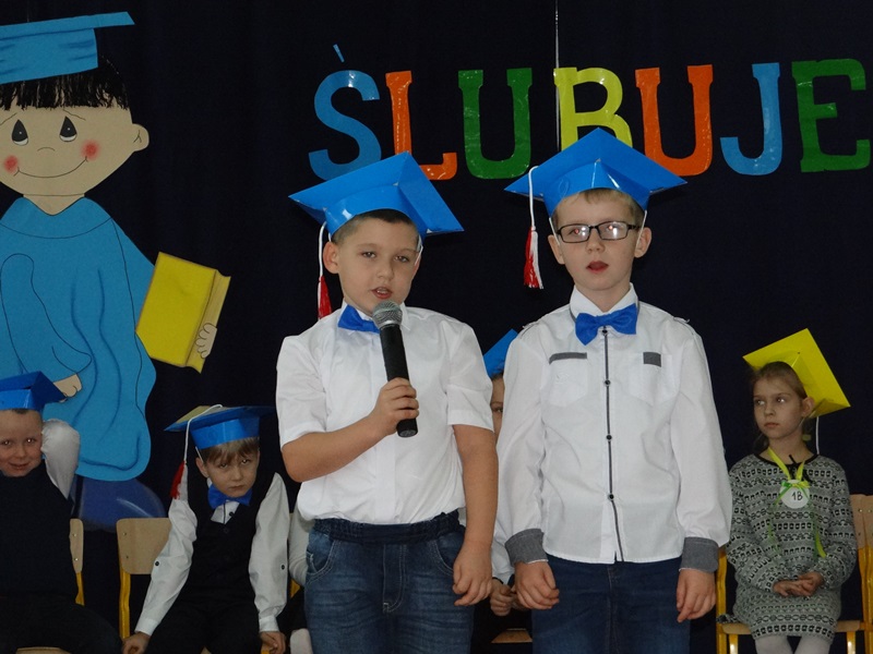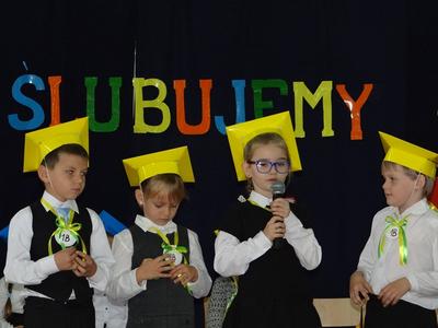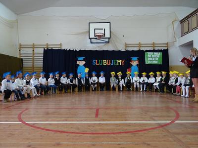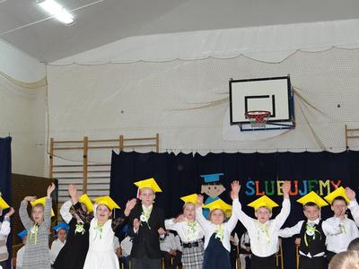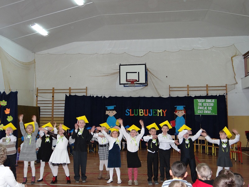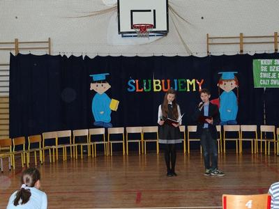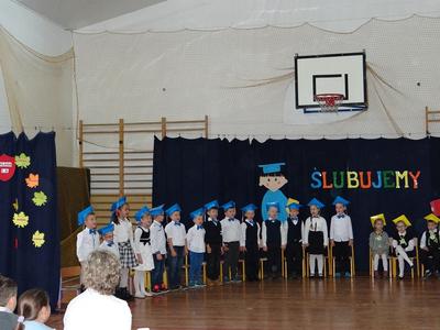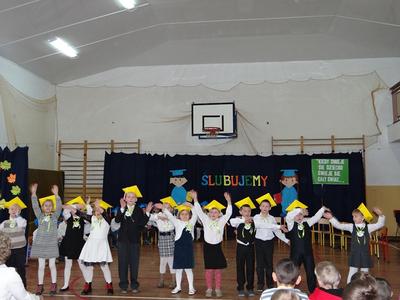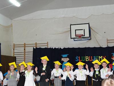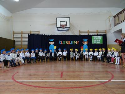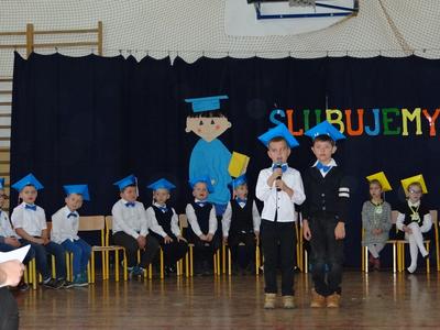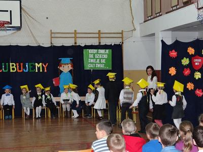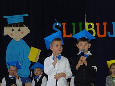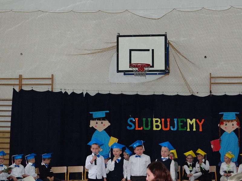 W dniu 29.10.2015 roku odbyło się pasowanie na uczniów z klasy IA oraz klasy IB szkoły podstawowej. Uczniowie zachwycili publiczność bardzo dobrym przygotowaniem pomimo tak niskiego wieku. Wychowawczynie obu klas pani Agnieszka Dydo oraz pani Agnieszka Nowak postarały się aby ich uczniowie pokazali się od jak najlepszej strony już na początku swojej edukacji. Dzieci powiedziały wierszyki bez żadnych pomyłek, zaśpiewały piosenki a nawet pokazały swoje zdolności taneczne. Zdecydowanie rodzice mogą być dumni ze swoich pociech. Dyrekcja czyli pan Sławomir Szymański oraz pani Teresa Zozula sprezentowali obu klasom prezent w postaci dużej gry edukacyjnej.