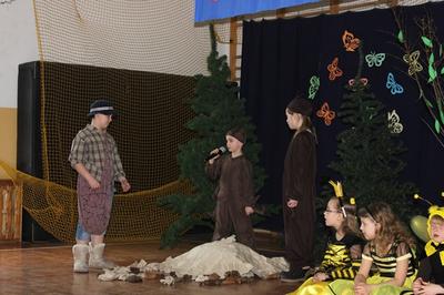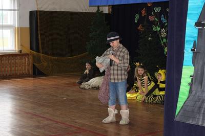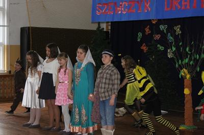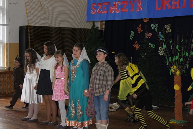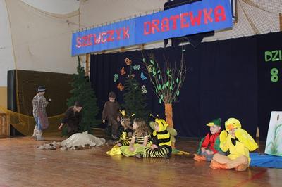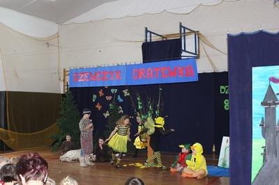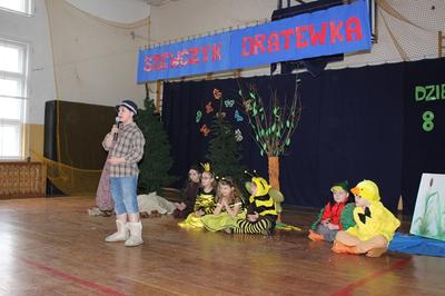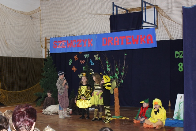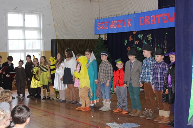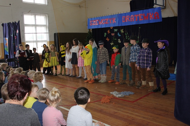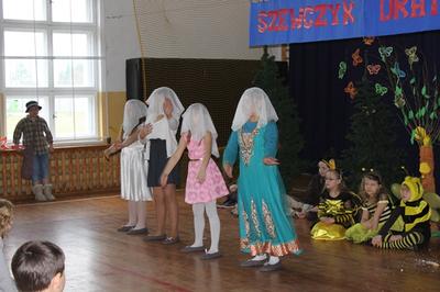 Tak też było w tym roku. Na uroczystej akademii uczniowie klasy II i III wcielili się w bohaterów bajki pt."Szewczyk Dratewka".