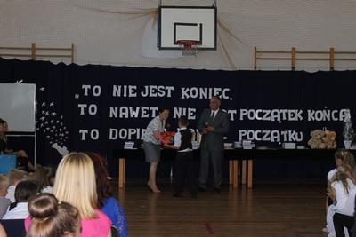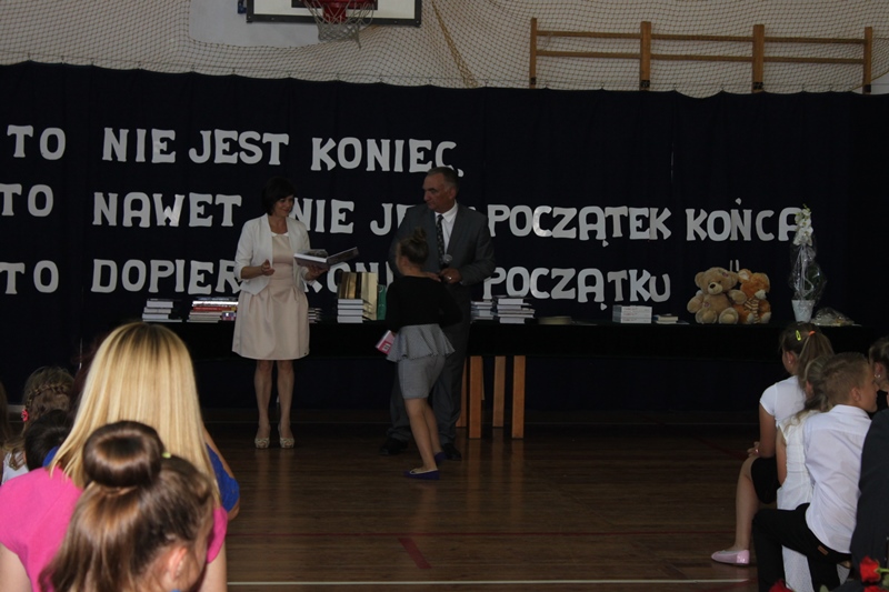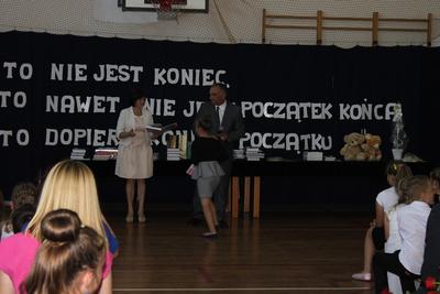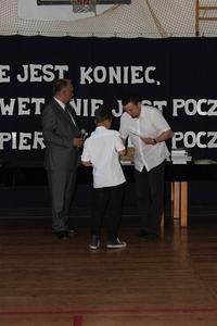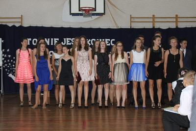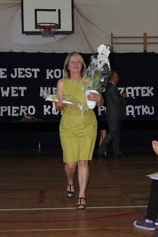 KLASA III GIMNAZJUM ROZPOCZĘŁA POLONEZEN, NASTĘPNIE DYREKTOR WRĘCZYŁ NAGRODY I ŚWIADECTWA Z PASKIEM. PODZIĘKOWAŁ P.KRYSTYNIE CIRSZ ZA WIELOLETNIĄ WSPÓŁPRACĘ, GDYŻ P. KRYSTYNA ODCHODZI NA EMERYTURĘ. A WSZYSTKIM ŻYCZYŁ
