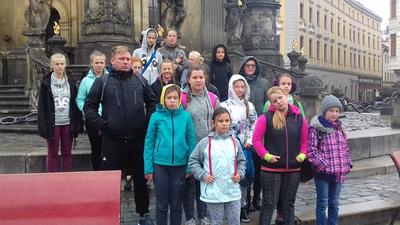 i Aleny Svoradinowej mieliśmy okazję zwiedzić ciekawe obiekty czeskich Moraw i wziąć udział w zawodach rekreacyjno-sportowych. Droga do Czech mijała szybko- na granicy wymieniliśmy złotówki na korony a pierwszy dłuższy przystanek zorganizowaliśmy w Ołomuńcu. Na starym mieście zobaczyliśmy gotycki ratusz z zegarem astronomicznym, kolumną Św. Trójcy oraz katedrę św. Wacława i kościół św. Michała. Do Kobyli dotarliśmy ok. 14.00. Obiad zjedliśmy w szkolnej stołówce. Po posiłku czekała wszystkie dzieci niespodzianka – tym razem nie spaliśmy w hotelu lecz zaproszono nasze dzieci do czeskich domów. Dla niektórych był to szok. Okazało się, że nikt nie żałował a integracja kulturowa przynosi wtedy lepsze efekty. Po kwaterunku rozegraliśmy pierwszy mecz w koszykówkę z gospodyniami. Pomimo zmęczenia osiągnęliśmy satysfakcjonujący wynik – starsza drużyna wygrała a młodsza ustąpiła swoim rywalkom różnicą zaledwie 4 punktów. Po kolacji udaliśmy się do siedziby kobylskiego ORLA gdzie dziewczęta mogły skorzystać z infrastruktury sportowej oraz rozegrać mecz w kręgle.