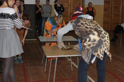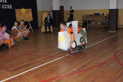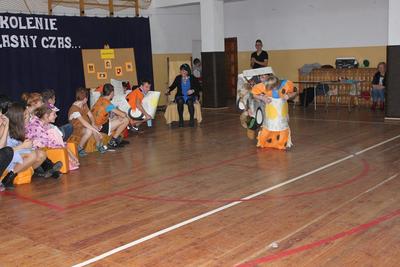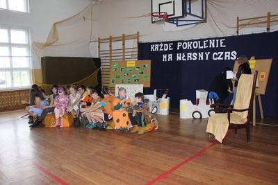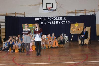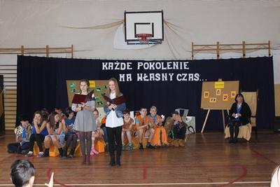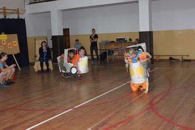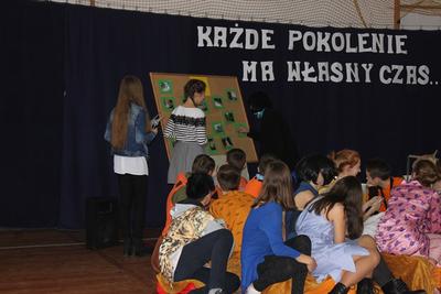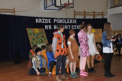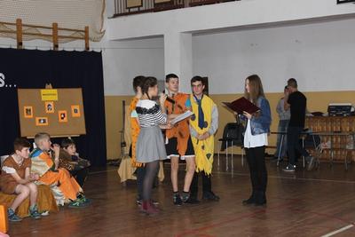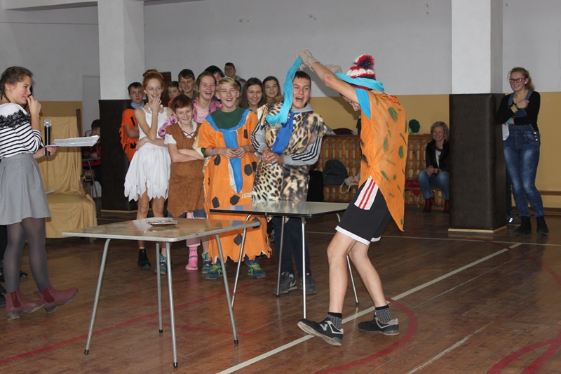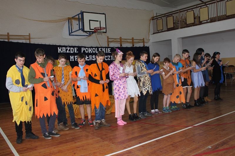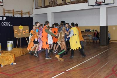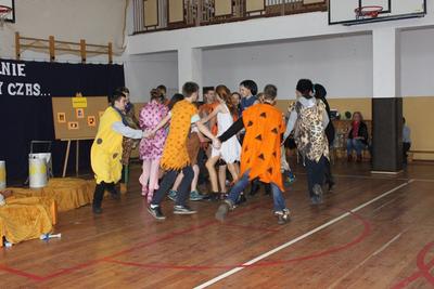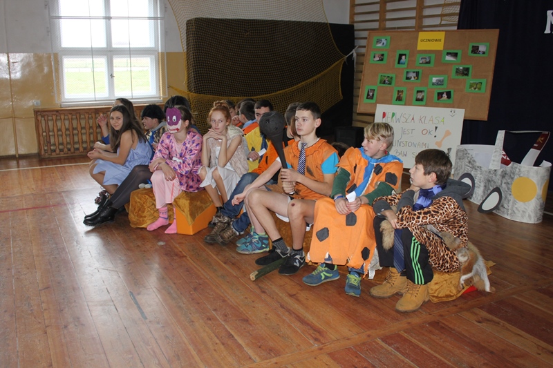 Dnia 25 listopada 2016 r. odbyły się otrzęsiny klasy pierwszej gimnazjum, przygotowane przez Samorząd Uczniowski. Szczęśliwa ręka wychowawczyni, pani Joanny Magdziarz wylosowała dla pierwszaków przebranie Flinstonów. Stroje odznaczały się ogromną pomysłowością i estetyką. To był ważny dzień dla pierwszaków, w ten dzień musieli podołać zadaniom, wymyślonym przez starszych kolegów. Na początku pierwszoklasiści zaskoczyli nas przygotowanym wcześniej tańcem i piosenką. Wychowawczyni klasy podzieliła swoich wychowanków na cztery grupy: sportowcy, dziennikarze, fotoreporterzy, intelektualiści. Zadaniem fotoreporterów było rozpoznanie na różnych zdjęciach swojej wychowawczyni, dla utrudnienia były to zdjęcia z dzieciństwa. Ta grupa bezbłędnie wykonała to zadanie. Kolejną grupą był zespół dziennikarzy. Musieli przeprowadzić wywiad z panią Joanną i dowiedzieć się jak najwięcej szczegółów z życia wychowawcy. Po upływie czasu były zadawane pytania uczniom. Odpowiedzi musiały się pokrywać z odpowiedziami wychowawcy. Następnie cała klasa zaśpiewała fraszkę ,,Na zdrowie" do melodii ,,Szła dzieweczka do laseczka". Kolejną misją dla wychowawcy było rozpoznanie ucznia swojej klasy z przygotowanych wcześniej opisów. Pani wychowawczyni dobrze poradziła sobie z tym zadaniem. Potem odbyła się konkurencja, w której grupa sportowców miał za cel okrążenie sali gimnastycznej pojazdami Flinstonów. Następnym zadaniem dla grupy intelektualistów był konkurs wiedzy o szkole. Pierwszoklasiści musieli odpowiedzieć na różne pytania, dotyczące szkoły. Ostatnią misją dla pierwszaków było jak najszybsze zjedzenie czekolady. Przy tej konkurencji było śmiechu co nie miara. Na końcu uczniowie klasy pierwszej musieli złożyć przysięgę. Pierwszaki doskonale poradziły sobie z postawionymi zadaniami. Jesteście godni nosić miano uczniów gimnazjum w Jędrzejewie.