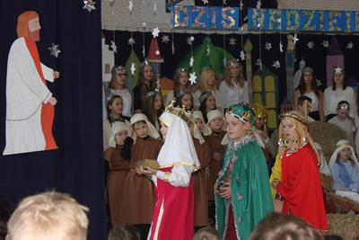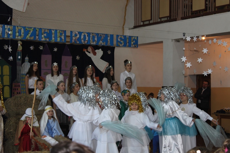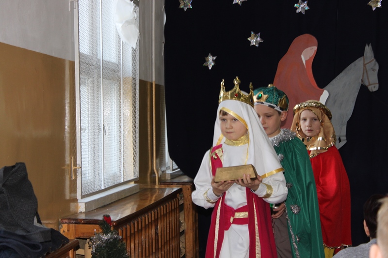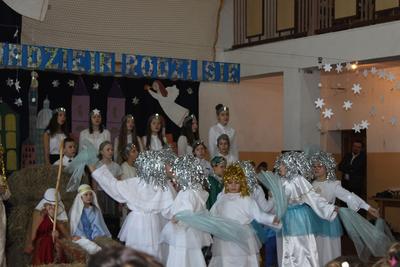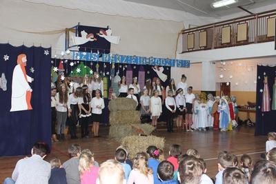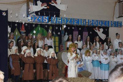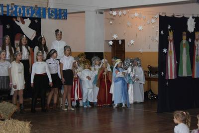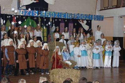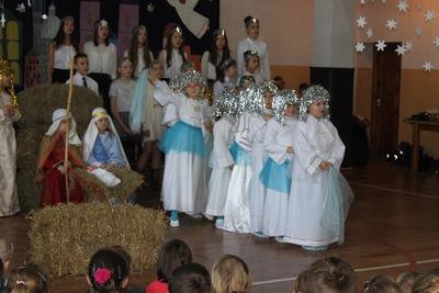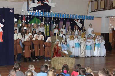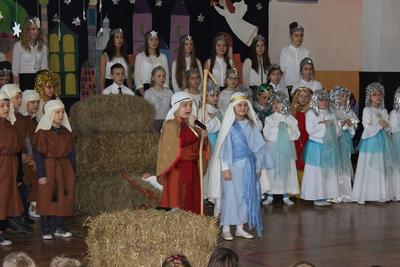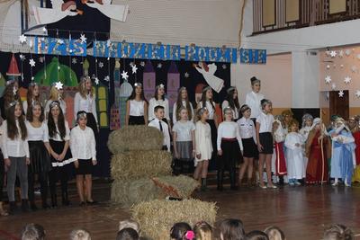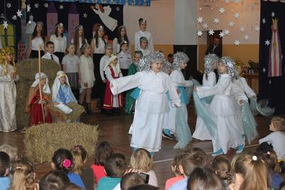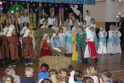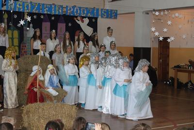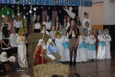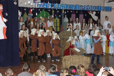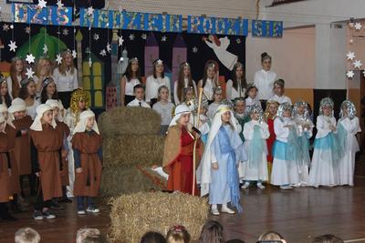 Ze Świętami Bożego Narodzenia wiąże się wiele pięknych tradycji i zwyczajów. Jednym z nich jest odgrywanie inscenizacji o Bożym Narodzeniu zwanych Jasełkami. W świąteczną atmosferę wprowadzili nas uczniowie klas II, którzy przygotowali przepiękne jasełka. Uczniowie pokazali w ten sposób wydarzenia sprzed ponad dwóch tysięcy lat, kiedy to w Betlejem narodziło się Boże Dzieciątko. Dzieci wcieliły się w role Maryi i Józefa, pasterzy, aniołów, trzech króli, przybywających złożyć pokłon Jezusowi narodzonemu w ubogiej stajence. Uroku inscenizacji dodały kolędy, które napełniły wszystkich świąteczną radością i sprawiły, że poczuliśmy magię zbliżających się świąt. Opiekunami były panie: M.Wojdziak, A. Nowak, A. Cieślak Do wspólnego kolędowania włączyli się uczniowie, nauczyciele, rodzice i zaproszeni goście- zastępca Wójta Gminy Czarnków p. M. Piotrowska, Wicestarosta p. J.Klimaszewski oraz sołtys wsi p. E. Mitelewski. Po występie głos zabrał pan dyrektor, który złożył wszystkim świąteczne życzenia.