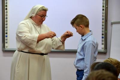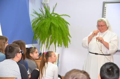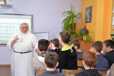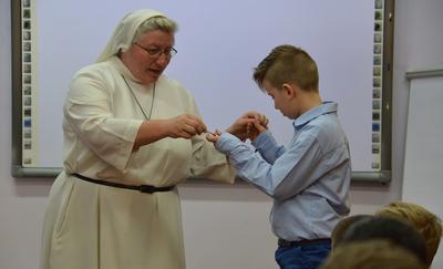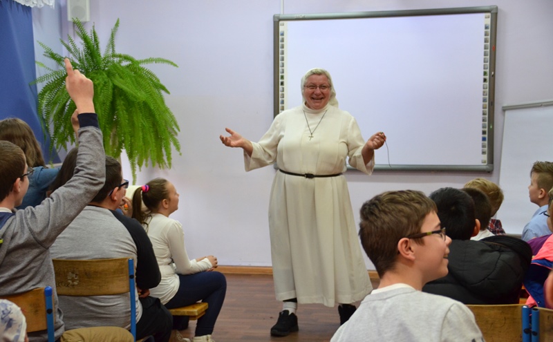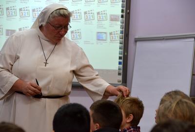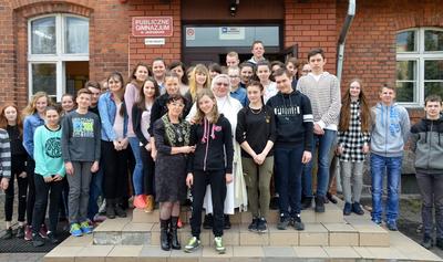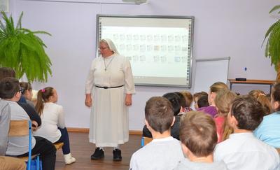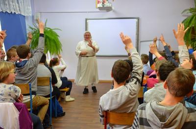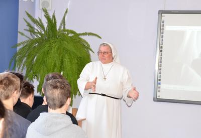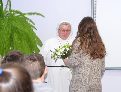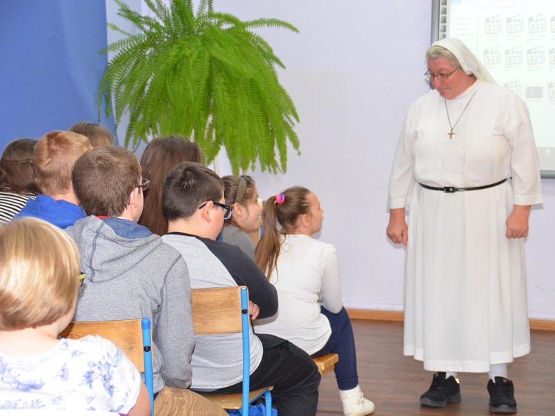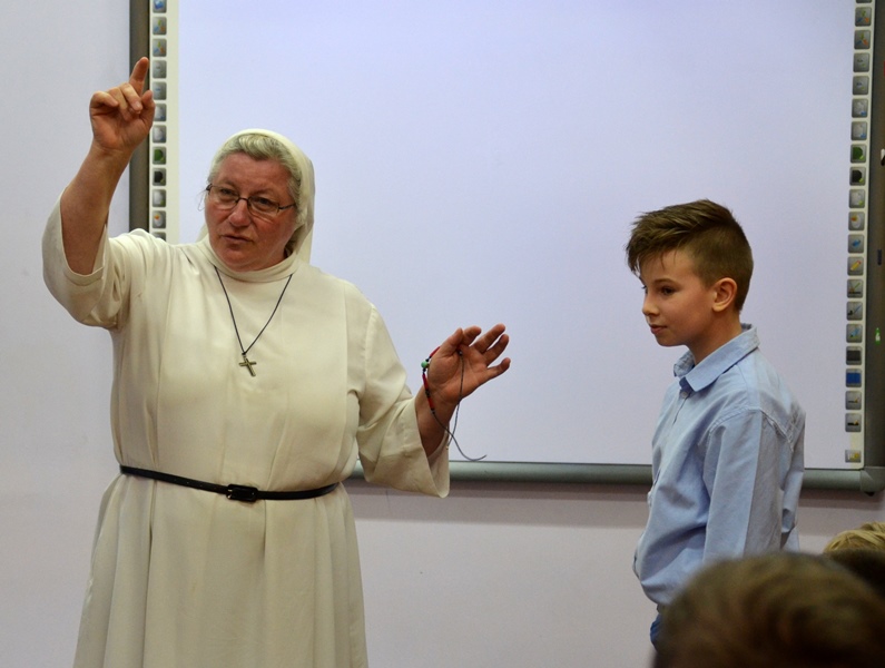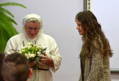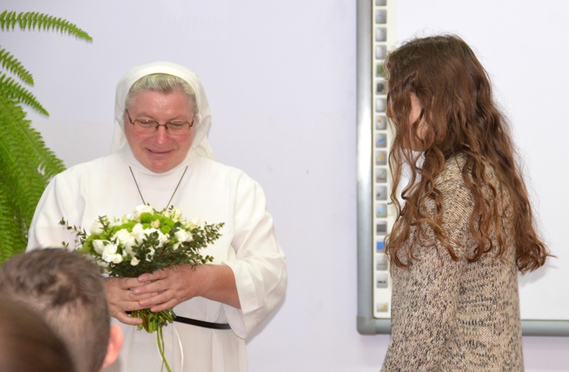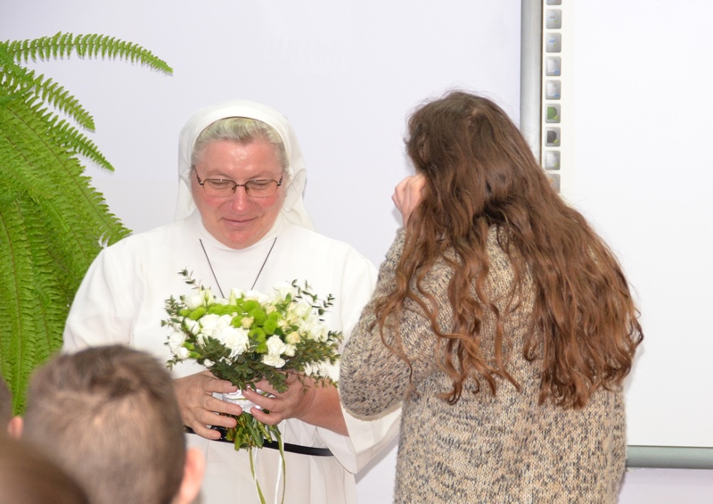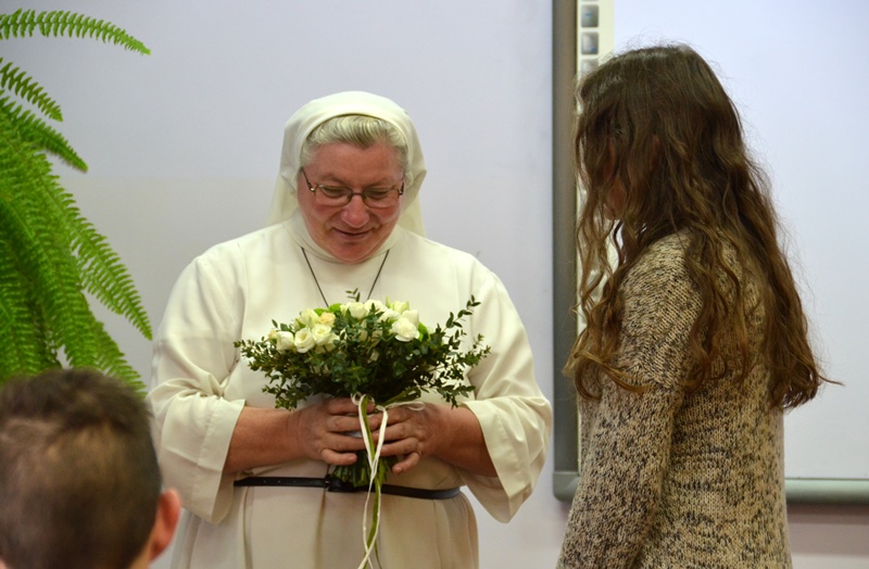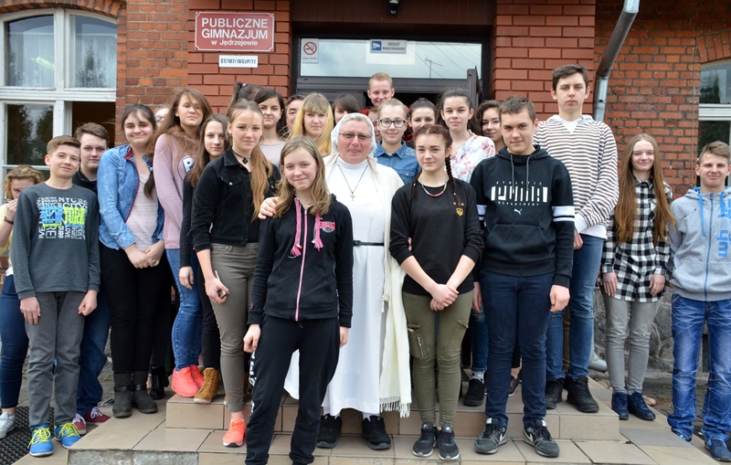 Dnia 16 marca 2017 roku odwiedziła naszą szkołę siostra Tadeusza Helena Frąckiewicz, z której inicjatywy powstała Fundacja im. Stefana Szolc – Rogozińskiego ,,Serce dla Afryki’’. Od 18 lat siostra Tadeusza, osoba niezwykle charyzmatyczna, ciepła, energiczna i emanująca radością życia troszczy się o zapewnienie mieszkańcom 28 wsi kameruńskich podstawowych potrzeb egzystencjalnych, a dzieciom – możliwości nauki. Na dwóch spotkaniach z uczniami naszej szkoły siostra Tadeusza opowiadała o warunkach życia kameruńskich dzieci, o ich zabawach, codzienności, kulturze i edukacji, która w Kamerunie jest odpłatna, a większości rodzin nie stać na pokrycie czesnego swoich dzieci. Mimo to, dzięki m.in. takim osobom, jak siostra Tadeusza czy dzięki adopcji na odległość spora liczba dzieci może się uczyć. Nas zaskoczyło m.in. to, że mimo trudności dzieci w Kamerunie uczą się od początku szkoły podstawowej dwóch języków – francuskiego i angielskiego, a gdy są starsze – wybierają jeszcze np. język hiszpański albo niemiecki. Gdy kończą edukację, mówią 3 – 4 językami europejskimi, nie licząc swojego języka z danego regionu. W ramach adopcji na odległość nasza szkoła objęła już opieką drugie dziecko z Kamerunu, z okolic Garoua Boulai. Poprzednio naszą podopieczną była Debbie Bouko Josiane, dziewczynka, która skończyła już edukację. Od tego roku opiekujemy się dziesięcioletnim chłopcem z miejscowości Bindiba, Saidou Benoit. Nasza opieka polega na tym, że opłacamy mu roczną edukację przesyłając nasze wsparcie na konto Fundacji Serce dla Afryki ze wskazaniem konkretnego dziecka. Dzięki spotkaniu z siostrą Tadeuszą, filmom, jakie nam pokazała i jej barwnym opowieściom mieliśmy okazję poznać jeden z krajów afrykańskich, jakim jest Kamerun. To była niezwykła lekcja radości życia, bo to sformułowanie najczęściej przewijało się w opowieściach siostry – radości życia wynikającej z pełnionej z pasją misji, radości życia – mimo biedy – ludzi, którzy zamieszkują tamten rejon świata, radości życia z racji tego, że się po prostu żyje. Siostrze Tadeuszy, osobie mającej czas wypełniony co do minuty, bardzo serdecznie dziękujemy za to, że w swoim grafiku znalazła czas i chęci, aby spotkać się z nami, tu, w małym Jędrzejewie.