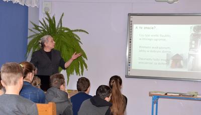 Pani Ewa Stryczyńska – Hodyl jest profesorem lituanistyki, wykładowcą UAM w Poznaniu, kierownikiem Zakładu Badań Porównawczych nad Kulturą w Instytucie Językoznawstwa, pasjonatką tego, co robi. Jest fantastycznym przykładem osoby, której praca sprawia niesamowitą przyjemność i jest jej pasją. W ramach naszego cyklu ,,Ludzie z pasją’’ gościliśmy w naszej szkole panią profesor w dniu 17 marca 2017 roku. Mieliśmy okazję poczuć się jak studenci, gdy słuchaliśmy jej wykładu o diable w folklorze i mitologii Bałtów. Z niesamowitą swadą i poczuciem humoru pani profesor przybliżała nam właściwości języka litewskiego, wierzenia Bałtów, ich mitologię oraz przepiękne baśnie, z tak ważną dla kultury litewskiej baśnią o królowej węży. Mieliśmy okazję zobaczyć i usłyszeć, że wierzenia, folklor, mity i baśnie mogą być tematami poważnych prac naukowych, a walka między Bogiem a diabłem o nasze dusze trwa od początku świata… Pani Ewa Stryczyńska – Hodyl zajmuje się literaturoznawstwem bałtyckim, jego rozwojem od początków piśmiennictwa po dzień dzisiejszy, natomiast jej zainteresowanie folklorem i mitologia Bałtów znalazło wyraz w monografii ,,Diabeł w literaturze litewskiej i łotewskiej od połowy XIX wieku do połowy XX wieku’’. Odpowiadając na nasze pytania, skąd właśnie takie a nie inne zainteresowania tematyczne, pani profesor powiedziała, że jak wiele rzeczy w życiu, tak i pasje mogą zrodzić się przypadkiem, a fascynacja przepiękną baśnią o królowej węży spowodowała właśnie wybór takiej a nie innej drogi naukowej. Znamy niewielu ludzi, dla których praca zawodowa sprawia autentyczną radość i którzy nazywają ją swoim hobby. Tym bardziej cieszymy się z tego, że mieliśmy okazję poznać panią Ewę Stryczyńską – Hodyl.