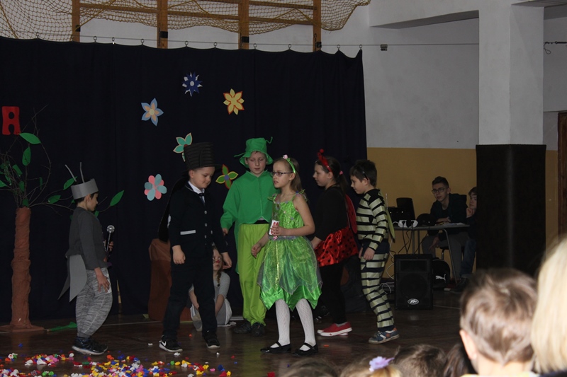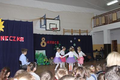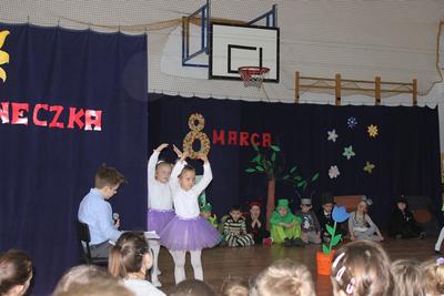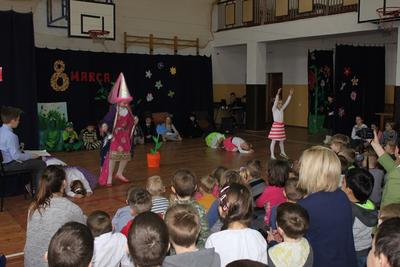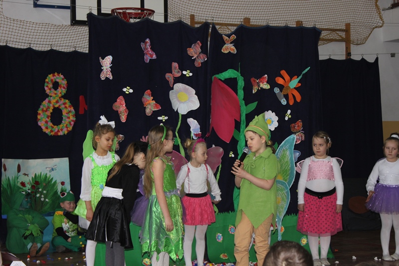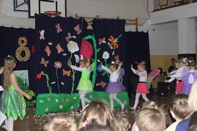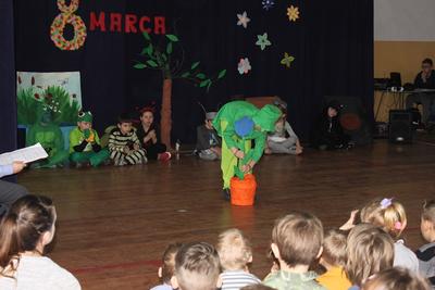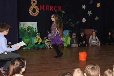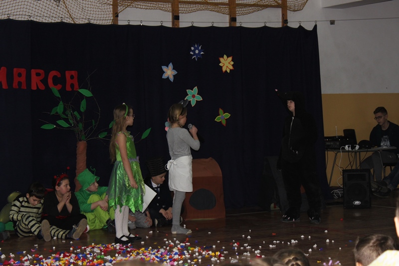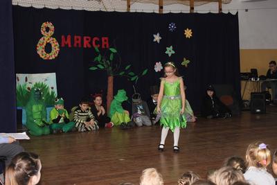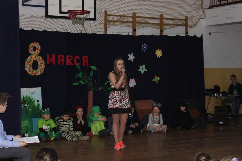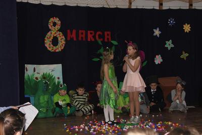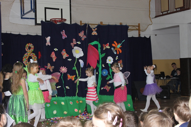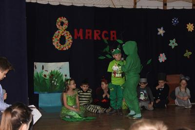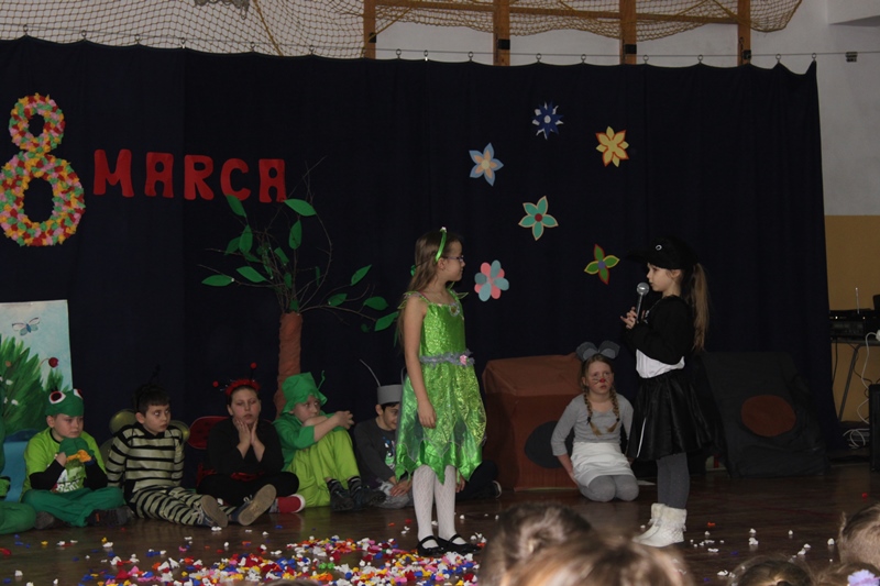 8 marca w naszej szkole nauczycielki klas młodszych Barbara Piątyszek i Elżbieta Marcinkowska tradycyjnie z uczniami swoich klas przygotowały inscenizację. W tym roku postanowiły zaprezentować lekturę pt.:"Calineczka". Uroczystość rozpoczęła uczennica gimnazjum Julia Golon piosenką Majki Jeżowskiej. Uczniowie wcielili się w role z wielkim zaangażowaniem i entuzjazmem. Nagrodzono ich gromkimi brawami. Na koniec z życzeniami, śpiewem i grą wystąpili chłopcy z gimnazjum. Wszystkie Panie zostały obdarowane kwiatami.