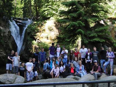 Jeśli chodzi o sam hotel, to nie było tam nic ciekawego. Może kilka drobnych incydentów, ale wolę zachować je dla siebie. Uznajmy, że po kolacji dość szybko poszliśmy spać, a rano zwiedzaliśmy Bazylikę Wniebowzięcia Najświętszej Mari Panny w Kruszowie. Była ogromna, piękna a freski w środku niej sprawiały niesamowite wrażenie. Po zwiedzaniu i czasie na kupienie pamiątek pojechaliśmy do parku Miniatur. Makiety były idealne. Dokładnie odwzorowały prawdziwe budynki, których niestety nie mieliśmy okazji zobaczyć. Po tym szybki powrót do Alpiny, sen i główna atrakcja naszej wycieczki. Podróż zaczęliśmy wejściem do świątyni Wang, czyli najstarszego ewangelickiego kościoła w Polsce. Następnie zaczęliśmy się wspinać. Dopiero tam zrozumiałem jakie one są potężne. Kilkakrotnie byliśmy zmuszeni do smarowania się kremem z filtrem. Temperatura odczuwalna była tak niska, że miałem na sobie kurtkę, jednak słońce swoimi promieniami lizało nas tak, że wielu z nas miało czerwone nosy. Strach pomyśleć, jakimi oparzeniami skończyłaby się nasza podróż gdyby nie nasze świetne i zaradne opiekunki. Były to pani Kryjewska i pani Dydo. Wracając do wspinaczki- łatwo nie było. Kilku nas na sam szczyt Śnieżki nie weszło, ale zostali w schronisku. Zejście trwało krócej, pomimo dłuższej trasy oraz trudniejszego szlaku do zejścia. Ostatniego dnia zwiedzaliśmy wodospady: Szklarkę i Kamieńczyk. A teraz kilka moich krótkich komentarzy, które można pominąć jeśli chce się czytać tylko o suchych faktach. Jeśli chodzi o przewodników, to było ich pięciu. Pani, która jeździła autobusem na miejscu pasażera. Mówiła ona o niektórych w czasie jazdy. Przewodnik, który opowiadał nam o Ślęży był typem śmieszka, ale i człowieka z ogromną pasją. Drugim przewodnikiem był pan, który był nauczycielem na emeryturze, oprowadzał nas po Bazylice. Trzeci przewodnik…(no tak. Byliśmy jeszcze w kopalni) był człowiek machina. Wszystko o czym nam mówił było krótkie, zwięzłe i …nudne. Słuchało się tego jak regułek. Przewodnik, który wprowadził nas na Górę nie był człowiekiem. Naprawdę! To była niezniszczalna maszyna. On prawie biegał, a w międzyczasie opowiadał nam to i owo. Warto wspomnieć o samym hotelu. Nie będę się tu zagłębiał w szczegóły, ale omówię krótko (moim zdaniem) wady i zalety. Zaletą były naprawdę czyste pokoje, sam wygląd i wystrój. Tak, to już wszystkie. Wady: niegościnni właściciele, jedzenie było… złe. Po prostu złe. No i akustyka hotelu, która sprawiała, że jeśli zamknie się mocniej drzwi, to huk jest tak wielki. No cóż, to już tyle. Wycieczka była naprawdę udana. Jako klasa zbliżyliśmy się do siebie. Jeszcze raz chciałbym podziękować wszystkim którzy się do naszej wycieczki w jakiś sposób dołożyli. Szczególnymi pozdrowieniami chciałbym uraczyć panią Przytulską, która niestety nie mogła być tam z nami, ale życie to nie bajka. Tak to jest, że czasem jest pod górkę, a czasem- z górki.