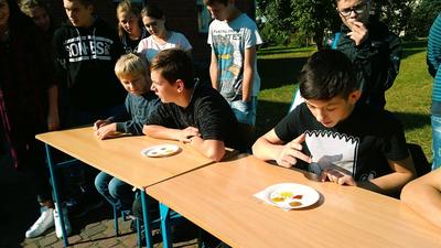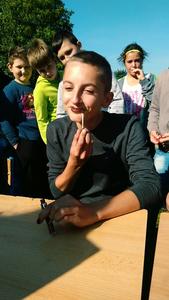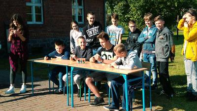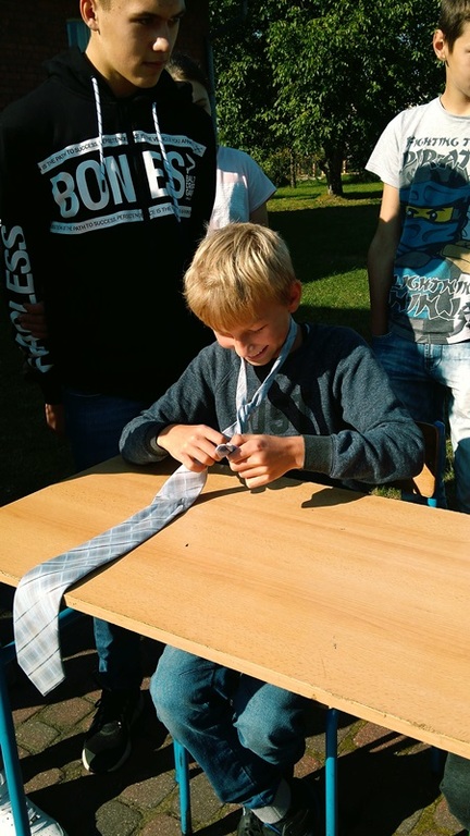 Na rozpoczęcie dnia chłopcy dostali słodki upominek, a potem czekały ich konkurencje. W naszych zabawa udział brali: z kl. 5- Kacper Jagła i Mateusz Tylkowski, z kl. 6- Szymon Łucki i Paweł Stróżyński, z kl. 2 gim. Wiktor Pertek i Błażej Disterheft i z kl 3 gim. Adam Ficner oraz Kamil Chaiński. Chłopacy do wykonania mieli 8 zadań, za każde zdobyć mogli po 5 punktów od Jurry, w którego skład wchodzili: Pani Agnieszka Dydo, Pani Joanna Magdziarz oraz Pan Dariusz Napierała. Do zdobycia był tytuł "Mistera Szkoły". W pierwszym zadaniu do wykonania mieli rozpoznać zapachy danych produktów, nasi chłopacy bardzo dobrze sobie z tym poradzili. Następną konkurencją było malowanie paznokci. Chłopacy musieli dobrać odpowiedni kolor oraz jak najdokładniej wykonać manicure. Uważam, że poradzili sobie z tym całkiem dobrze. Najśmieszniejszą konkurencją okazała się ta, w której zadawaliśmy chłopakom różne pytania, było przy tym śmiechu co nie miara, zdecydowanie nie spodziewałyśmy się tak pomysłowych odpowiedzi. Wszystkim bardzo podobała się też konkurencja, w której to nasi delikwenci musieli przejść się w szpilkach. O dziwo poradzili sobie z tym doskonale! Lepiej niż niejedna kobieta. Oprócz wymienionych już zadań chłopacy do wykonania mieli także: zawiązać krawaty, pomalować sobie usta (bez luster), odgadnąć przyprawy oraz utworzyć własne stylizacje.