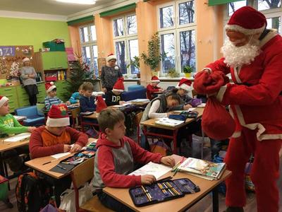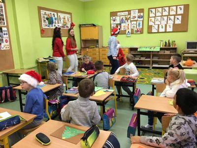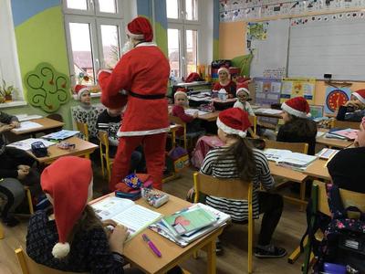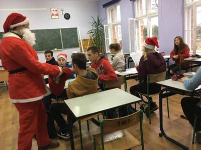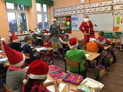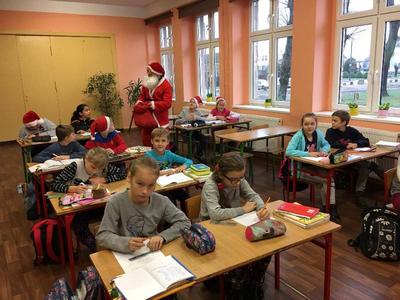 6 grudnia w naszej szkole obchodziliśmy Mikołajki. Na pierwszej lekcji w każdej z klas zagościł Mikołaj i obdarował uczniów oraz nauczycieli słodkościami. U uczniów najmłodszych klas każdy miał okazję usiąść Mikołajowi na kolano oraz powiedzieć co chciałby dostać na Święta Bożego Narodzenia.