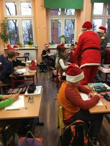 Na drugiej lekcji zaczęły się przygotowania do Mikołajkowego turnieju. W rozgrywkach udział wzięły wszystkie klasy szkoły oraz na wspólną zabawę udało nam się namówić również nauczycieli.