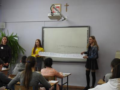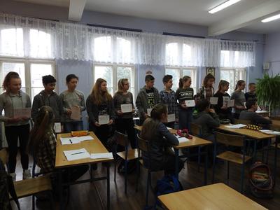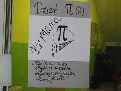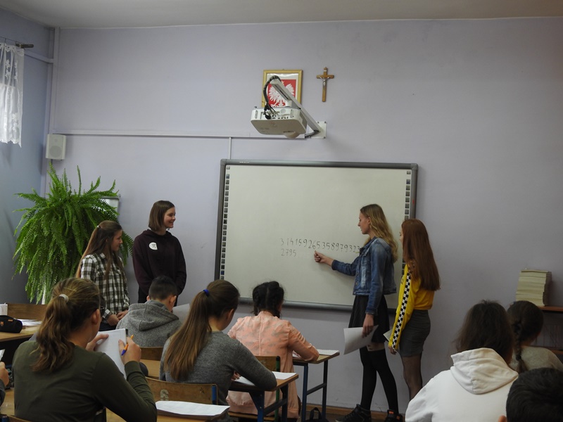 14 marca w naszej szkole obchodziliśmy dzień liczby Pi. Uczniowie klasy drugiej gimnazjum: Wiktoria, Kasia, Weronika, Zuza, Emila i Michał przygotowali lekcje matematyki. Prowadząc lekcje we wszystkich klasach przedstawili prezentacje i ciekawoski oraz przedstawili mnóstwo ciekawych zadań związanych z liczbą Pi. Uczniowie byli zachwyceni. Dziękujemy