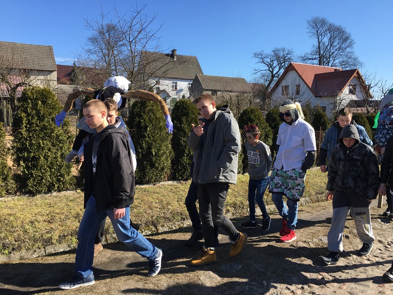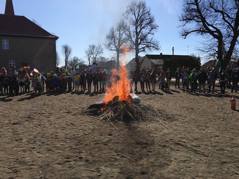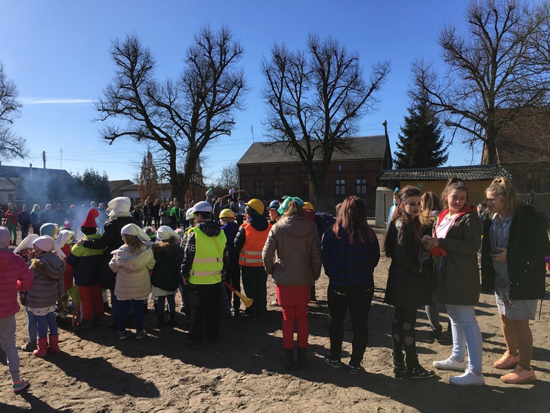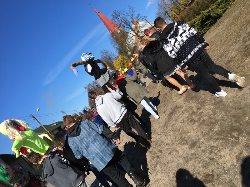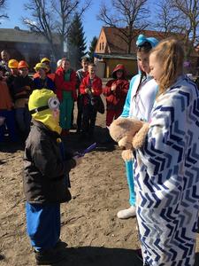 Dnia 21.03.2018 roku, odbył się w naszej szkole dzień wiosny. Wszyscy uczniowie, podobnie jak i nauczyciele mieli za zadanie wcielić się w rolę różnych postaci wyznaczonych przez samorząd szkolny. Tego dnia w szkole było bardzo kolorowo! Każda z klas przygotowała również marzannę. Na drugiej lekcji miał miejsce obchód, podczas którego wszyscy świetnie się bawiliśmy. Po obchodzie Pan Krzysztof- woźny rozpalił ognisko, w którym spaliliśmy nasze marzanny i pożegnaliśmy zimę. Na sam koniec samorząd szkolny nagrodził najlepsze przebrania. Również wśród nauczycieli znalazły się osoby nagrodzone: