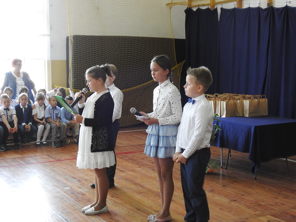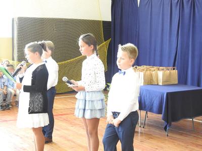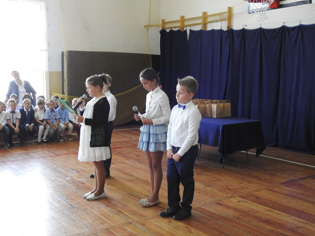 Rok szkolny 2018/2019 rozpoczeliśmy hymnem Polski, a nastepnie część artystyczną przedstawili uczniowie klasy czwartej i piatej. Pan Dyrektor Sławomir Szymański powitał wszystkich uczniów, rodziców i pracowników szkoły. Poinformował o zmianach w szkole i przedstawił nowych nauczycieli: panią Barbarę Radzi, panią Paulinę Flitta-Kubisz, panią Lucynę Kujat. Wszystkim życzymy wytrwałości i dobrych wyników w nauce.