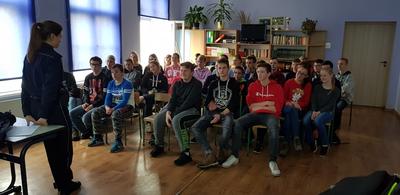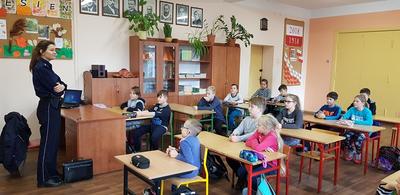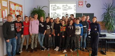 W dniu 15 listopada 2018 roku w naszej szkole odbyło się spotkanie edukacyjno - profilaktyczne z udziałem Policji, z zakresu zagrożeń związanych z podejmowaniem zachowań ryzykownych przez dzieci i młodzież. W spotkaniu wzięli udział uczniowie klasy IV oraz VIII i III Gimnazjum.