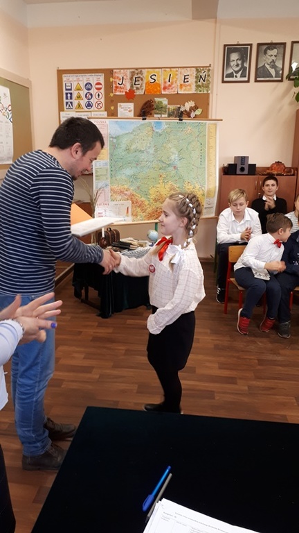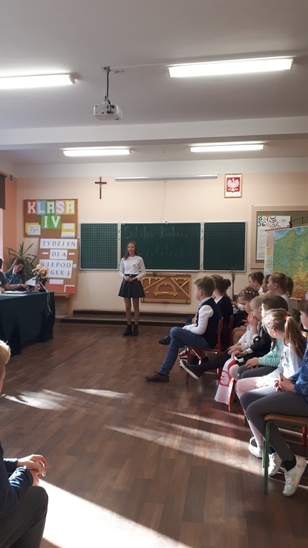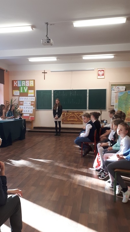 ,,Dzisiaj wielka jest rocznica-jedenasty listopada...! Tym, co zmarli za Ojczyznę, hołd wdzięczności Polska składa.” - pisał Ludwik Wiszniewski w wierszu ,,11 listopada". Te same słowa uczniowie Szkoły Podstawowej w Jędrzejewie mogli usłyszeć 6 listopada podczas Szkolnego Konkursu Recytatorskiego. Był on drugim dniem, zaraz po pięknej Akademii w wykonaniu najstarszej z klas, poświęconym upamiętnianiu 100 rocznicy odzyskania niepodległości przez Polskę, zorganizowanym z okazji Tygodnia dla Niepodległej. W konkursie wzięło udział 20 osób z różnych kategorii wiekowych. Uczestnicy zostali przygotowani przez swoich wychowawców i polonistów, dlatego mimika twarzy, modulacja głosu lub rekwizyty były odpowiednie do treści prezentowanego wiersza. Można było wysłuchać znanych, mniej lub bardziej, wielu utworów polskich poetów, m.in. Adama Mickiewicza, Antoniego Słonimskiego lub ks. Jana Twardowskiego.W czasie przygotowań uczniowie kształtowali nie tylko umiejętności recytatorskie, ale również poznawali twórczość polskich poetów oraz historię Polski. W jury konkursu zasiadły: Pani Barbara Pisowodzka, Pani Elżbieta Marcinkowska oraz Pani Paulina Flitta-Kubisz.
