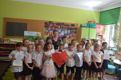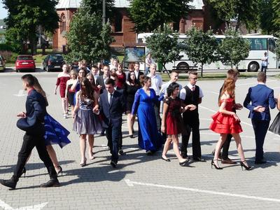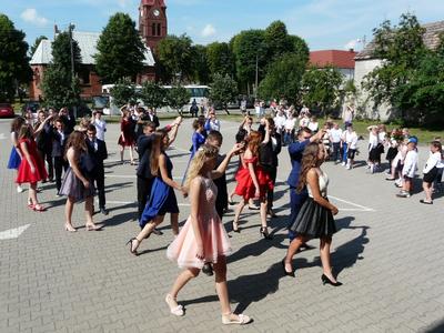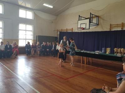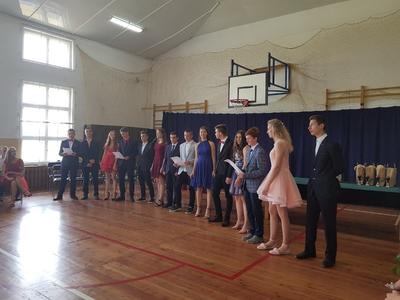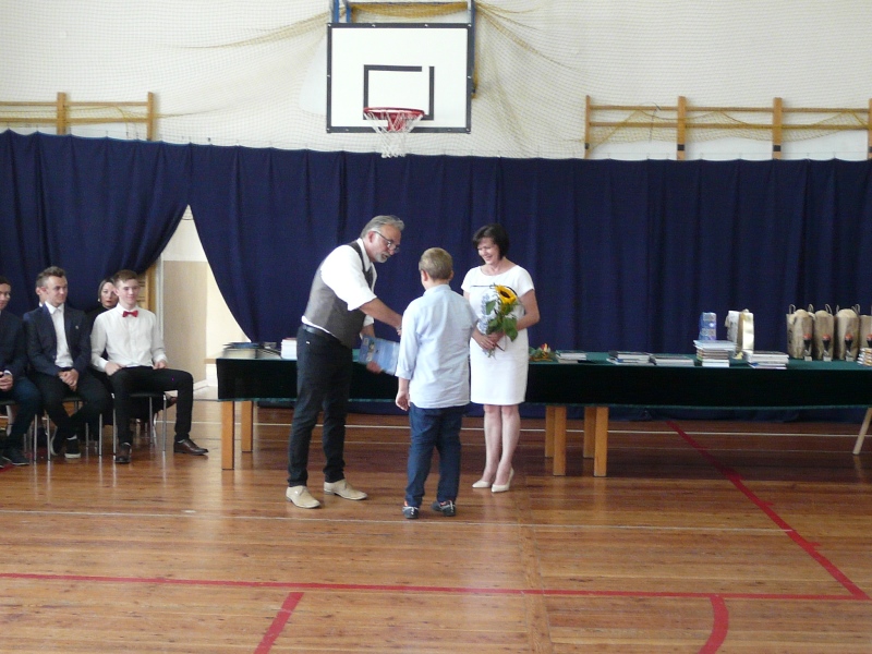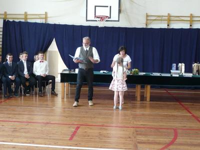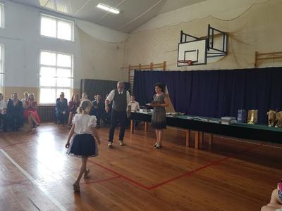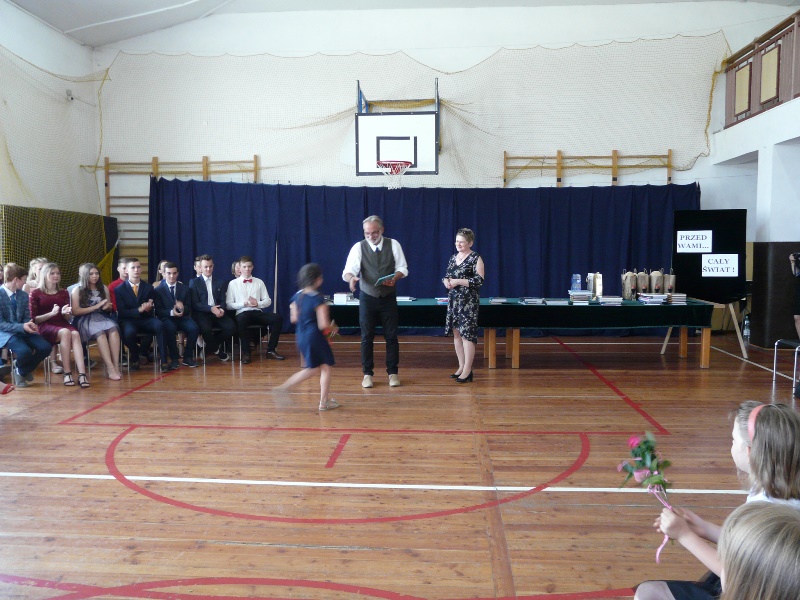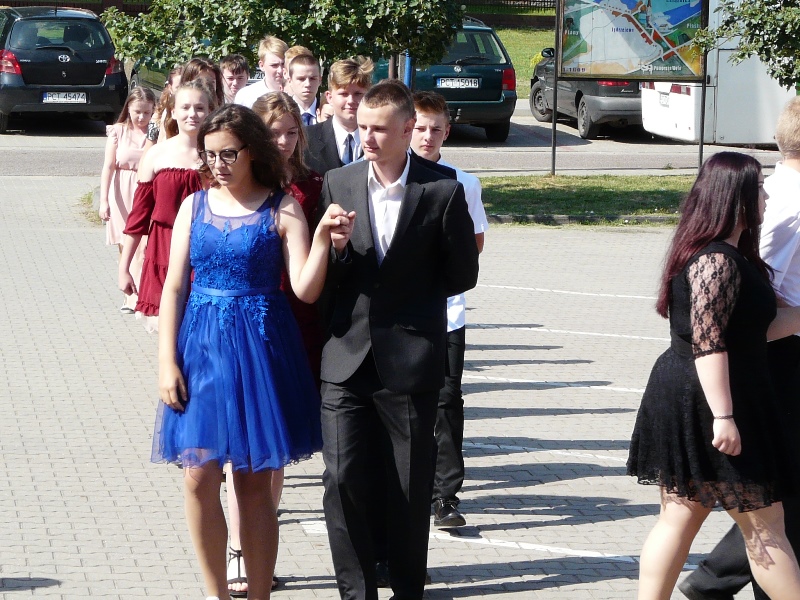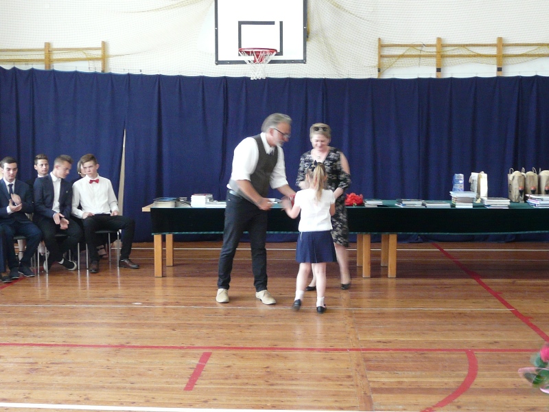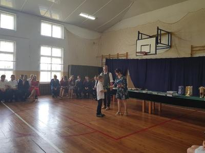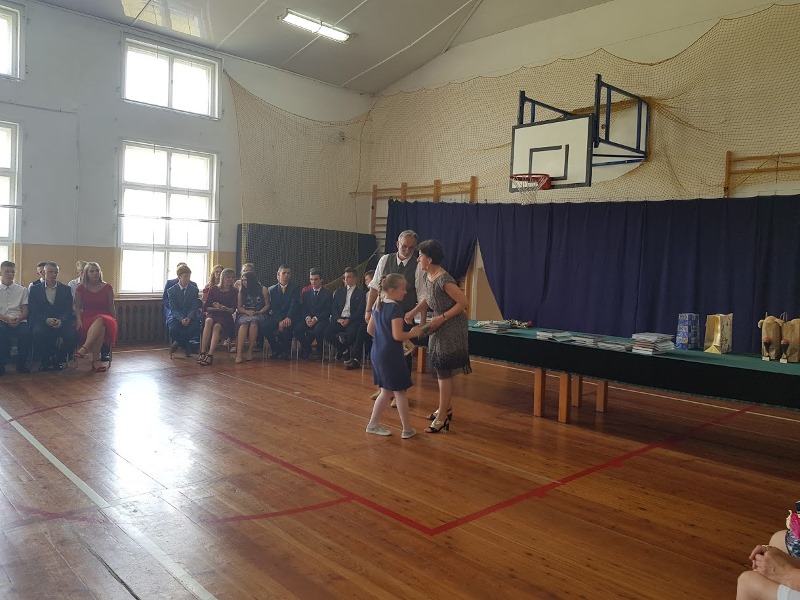 Zakończenie roku szkolnego 2018/2019 rozpoczął taniec „Polonez” w wykonaniu uczniów klas VIII Szkoły Podstawowej i III Gimnazjum . Następnie Dyrektor Szkoły Sławomir Szymański wręczył świadectwa z wyróżnieniem i nagrody uczniom klas I-VII . Ósmoklasistom i trzecioklasistom wręczono pamiątkowe teczki ze świadectwami i zaświadczeniami o wynikach egzaminu gimnazjalnego i egzaminu ósmoklasisty. Listy gratulacyjne i podziękowania otrzymali rodzice uczniów pracujących na rzecz klasy, szkoły i środowiska, przyjaciele szkoły.