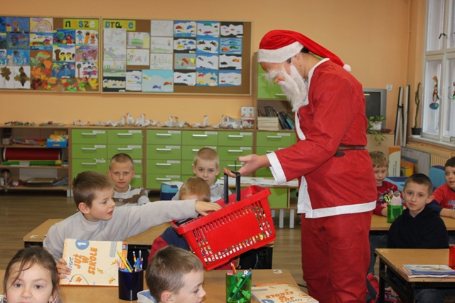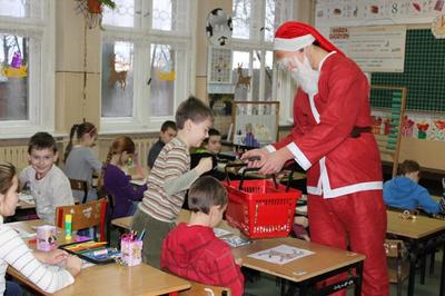 Samorząd Szkolny przy pomocy sklepiku szkolnego, zebrał fundusze na zakup cukierków dla wszystkich uczniów szkoły. Mikołaj odwiedzał poszczególne klasy i obdarowywał dzieci słodyczami. Uczniowie Samorzadu Szkolnego zorganizowali mecz piłki siatkowej Uczniowie- Nauczyciele. Mecz zakończył się zwycięstwem uczniów. GRATULUJEMY!!!!