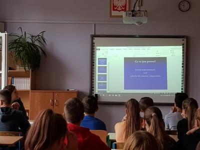 16 października 2019 roku odbyły się w naszej prelekcje z kuratorem zawodowym Sądu Rejonowego w Trzciance p. Agnieszką Klepianowską pt.: Bezpieczna szkoła - bezpieczny uczeń". Uczniowie klas IV - VIII mieli okazję żeby zapoznać się z obowiązującymi ich, jako nieletnich, przepisami prawa.