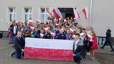 Uczniowie wspólnie z nauczycielami i pracownikami szkoły odśpiewali cztery zwrotki hymnu. Pani wicedyrektor, Teresa Zozula, przypomniała, jak wielkie znaczenie miało odzyskanie niepodległości po 123 latach niewoli. Natomiast Pan Robert Zimny, nauczyciel historii, podkreślił, że nasza ojczyzna odzyskała suwerenność dzięki wielkim Polakom tamtych czasów. Słowa "Mazurka Dąbrowskiego", wyśpiewane przez kilkadziesiąt osób, w przededniu 101. rocznicy odzyskania przez Polskę niepodległości, mają wielkie znaczenie dla każdego - i dużego, i małego Polaka.