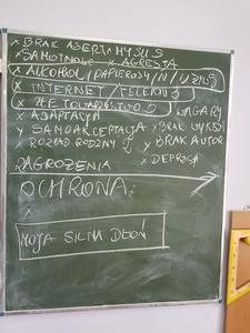 Podczas warsztatów uczestnicy z pomocą prowadzącego diagnozowali jakimi uzależnieniami zagrozeni są młodzi ludzie oraz w jaki sposób mogą uchronić się przed czyhajacymi zagrożeniami.