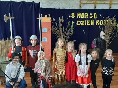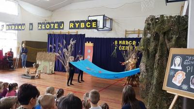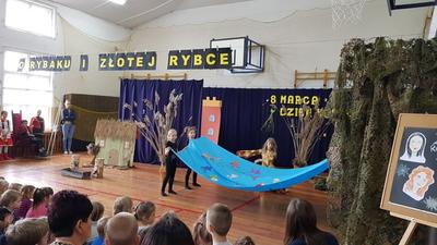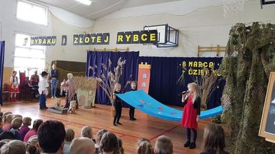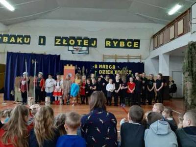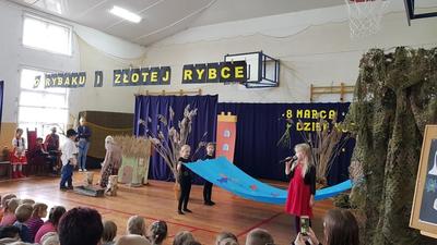 6 marca obchodziliśmy w naszej szkole Święto Kobiet. Akademię poprowadzili chłopcy z kl.VI a, którzy krótkimi humoreskami na temat kobiet poprawili wszystkim obecnym humor. Następnie wystąpili uczniowie z kl.III b, z koła teatralnego "Iskierka", przedstawiając bajkę pt. ,,O rybaku i złotej rybce". Widzowie przekonali się, że prawdziwe jest powiedzenie ,,Z tej powiastki morał płynie, znać się go opłaca: chciwość bardzo straszną rzeczą, nigdy nie popłaca". W przedstawieniu gościnnie wystąpiły dziewczynki z grupy tanecznej z naszej szkoły, ich taniec bardzo się wszystkim podobał. Tego dnia nie zabrakło też pięknych, kolorowych kwiatów i czekolad dla wszystkich kobiet z naszej szkoły.