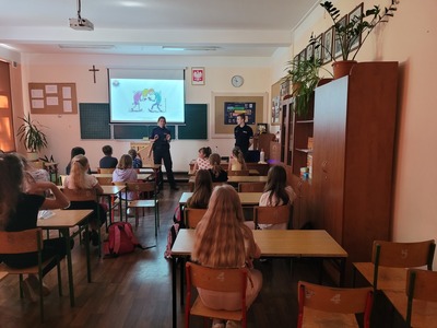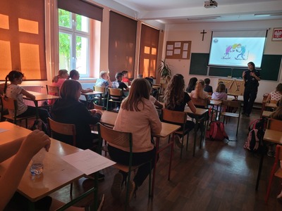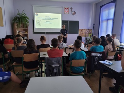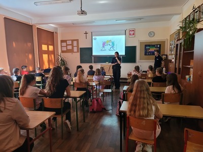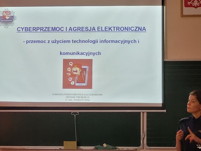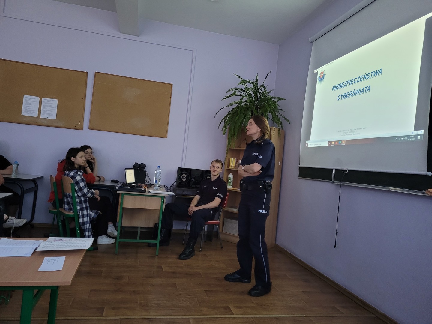 Asp. Izabela Kolasa przeprowadziła już po raz kolejny spotkania z uczniami naszej szkoły. Funkcjonariuszka tłumaczyła, że surfując w sieci trzeba być bardzo ostrożnym, gdyż nigdy nie wiadomo, kim jest osobą, którą poznajemy w Internecie. Zwracała także uwagę na to, aby podczas zawierania wirtualnych znajomości kierować się zasadą ograniczonoge zaufania oraz nie podawać żadnych danych.