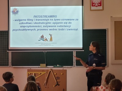 O tym jak bezpiecznie korzystać z internetu oraz jak reagować i chronić się przed hejtem i wszelkimi zagrożeniami płynącymi z korzystania z internetu, w dniu 10.06.2021 roku doradzali klasom 4-5 oraz 7 policjanci z KPP w Czarnkowie.