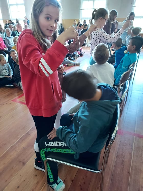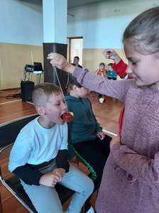 Jednym z zadań było zaplatanie warkocza koleżance z klasy. W tej konkurencji wygrał Michał Rajek z kl. VII, który zrobił to najlepiej i najszybciej. Konkurencję jedzenia jabłka na czas (bez użycia rąk!) wygrał Adrian Kulik z kl. VIII a, natomiast strasznie kwaśny – wg opinii zawodników – jogurt najszybciej zjadł Janek Rajek z kl. VIII b.