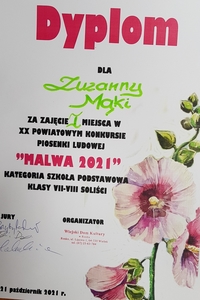 Naszą szkołę reprezentowała Zuzia Mąka z kl. VII, która w pięknym stylu wyśpiewała sobie...1 miejsce!