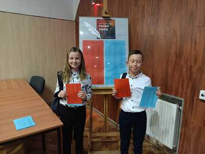 Nasi świeżo upieczeni czwartoklasiści zaprezentowali długie i wymagające utwory: Kinga wyrecytowała Lwy Hanny Januszewskiej , a Maciek przedstawił wiersz Danuty Wawiłow Jak tu ciemno. Konkurencja była spora (do etapu klas IV-VI zgłosiły się 24 osoby!), jednak po występie naszych reprezentantów, byłam przekonana, że nie wyjedziemy na tarczy. Młodzi recytatorzy wygłosili teksty jak prawdziwi profesjonaliści: doskonale oddali strach i niepokój (Maciek), czy gniew (Kinga), używając jedynie swojego głosu i intonacji. Niepotrzebne im były rekwizyty, przebrania czy gestykulacja, by oddać nastrój prezentowanych wierszy.