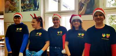 W tym samym czasie cz艂onkowie Szkolnego Ko艂a Caritas i Szkolnego Klubu Wolontariatu „Pomagamy razem” zorganizowali sprzeda偶 ciast i innych s艂odko艣ci oraz fina艂 zbiórki 偶ywno艣ci dla rodziny z J臋drzejewa.