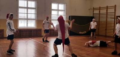 Cz臋艣ci膮 sportow膮 zaj膮艂 si臋 p. Robert Zimny, który s臋dziowa艂 i dowodzi艂 grupami uczniów z klas VII – VIII. Uczniowie zagrali kilka meczy siatkówki, podczas których mogli pochwali膰 si臋 umiej臋tno艣ciami na miar臋 Micha艂a Kubiaka czy Karola K艂osa. Niektórzy us艂yszeli cenne trenerskie uwagi typu „Ni偶ej na nogach” czy „Nie na raz”. Nie zabrak艂o te偶 motywacji ze strony p. Zimnego. Co jaki艣 czas mo偶na by艂o us艂ysze膰 „Tak trzyma膰?”, „艢wietnie!” czy „Dawa膰, dawa膰!”. Jak wida膰 po zdj臋ciach, wszyscy gracze byli bardzo zaanga偶owani i przej臋ci rozgrywkami.