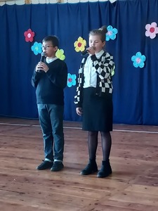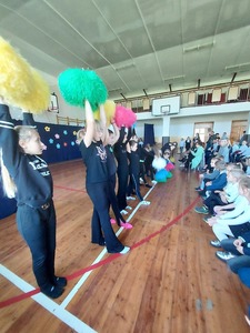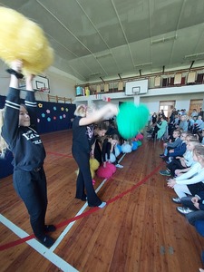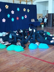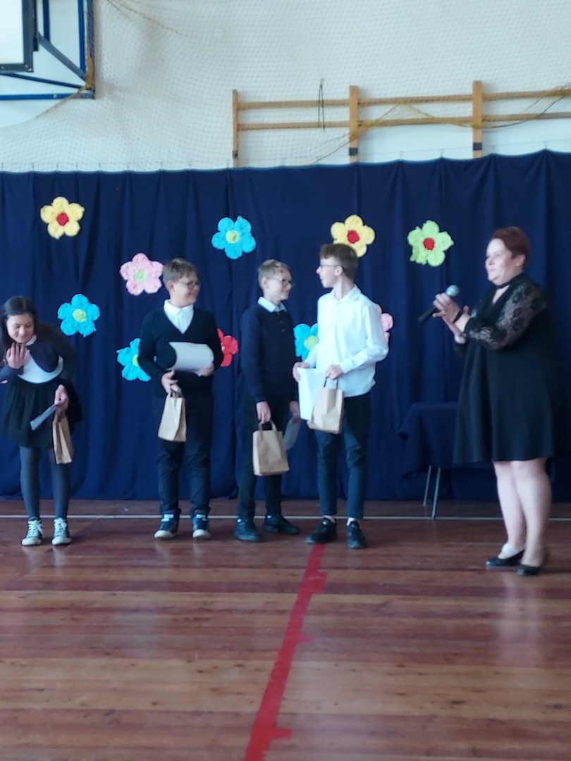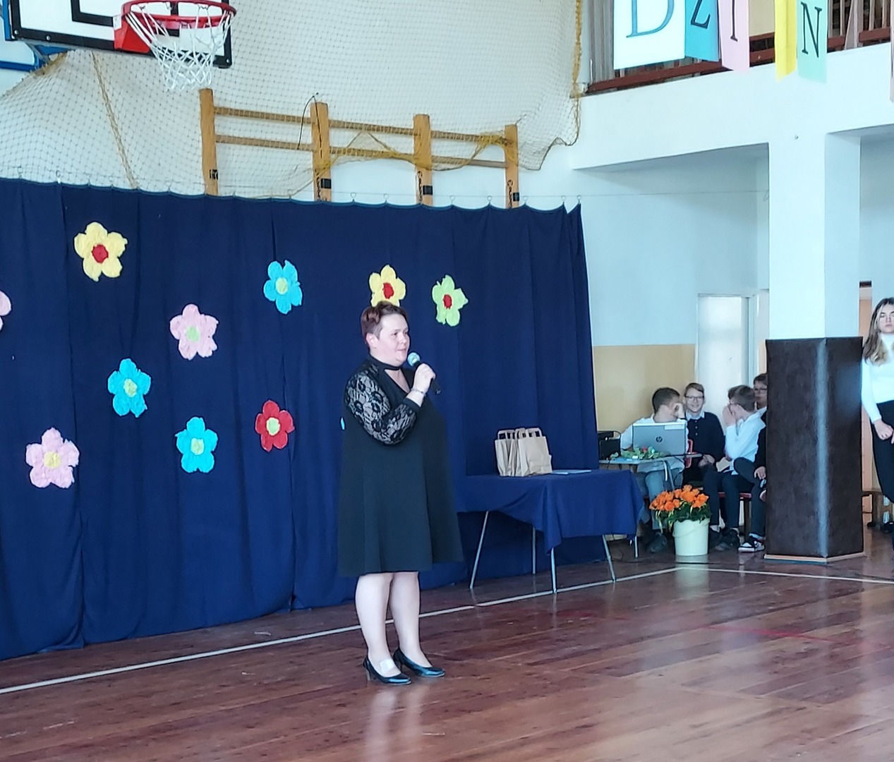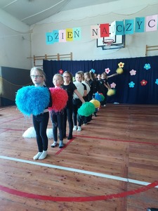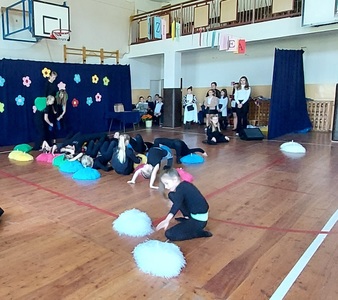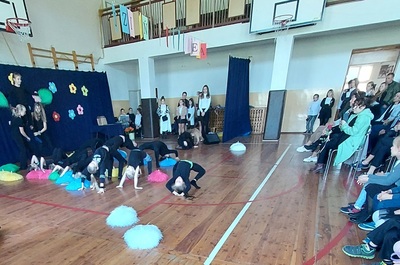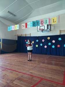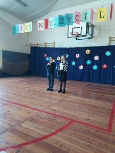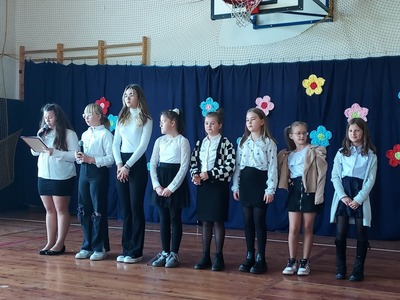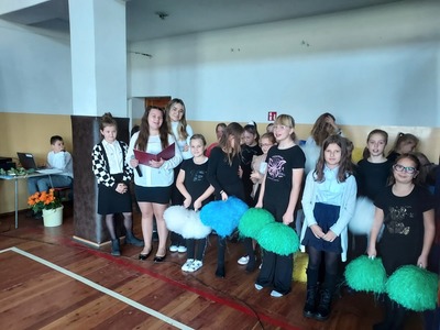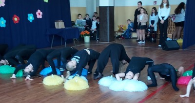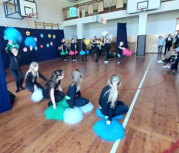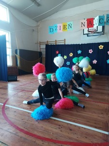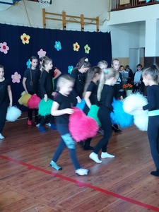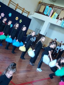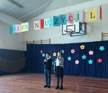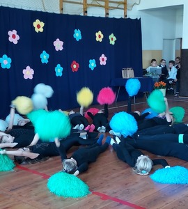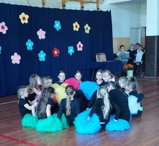 Specjalne powinszowania dla nauczycieli pięknie wyśpiewali NikolaWitt i Konrad Mitelewski z kl. 5, ich klasowy kolega - Maciej Sikora – zarecytował wiersz, a dziewczyny ze Szkolnego Kółka Tanecznego zaprezentowały układ z pomponami.