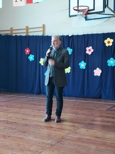 Zuzia Mąka z kl. 8 – przewodnicząca SU – przywitała nauczycieli, pracowników obsługi i administracji szkoły oraz uczniów. Pan dyrektor Sławomir Szymański, poproszony o zabranie głosu, złożył życzenia wszystkim pracownikom szkoły.