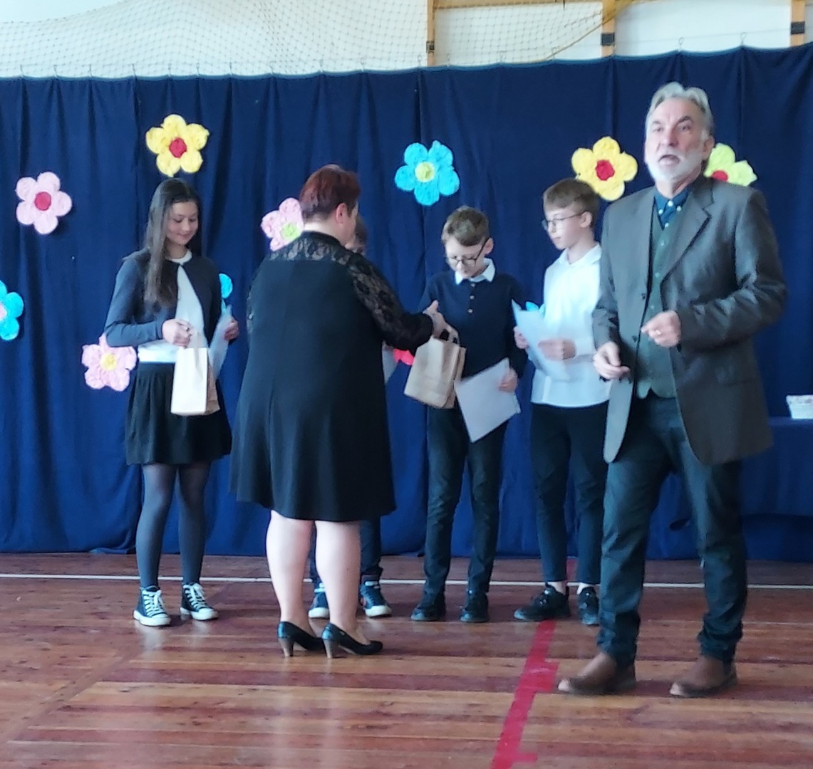 Na zakończenie uczniowie rozdali różyczki wszystkim obchodzącym Święto Edukacji i w miłych nastrojach powrócono na lekcje.