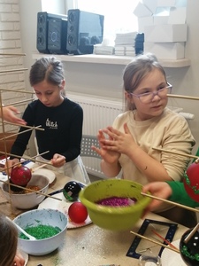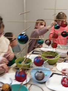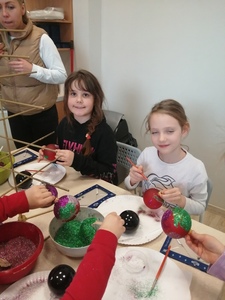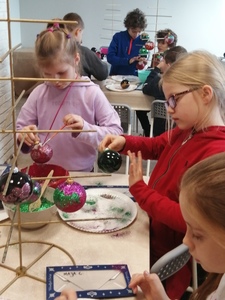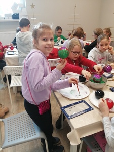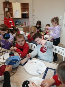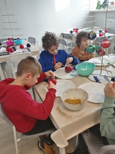 W pierwszej kolejności zwiedzili fabrykę ozdób choinkowych BolGlass, w której poznali tajniki wytwarzania i ozdabiania bombek. Następnie wzięli udział w warsztatach, podczas których własnoręcznie malowali i ozdabiali swoje bombki.