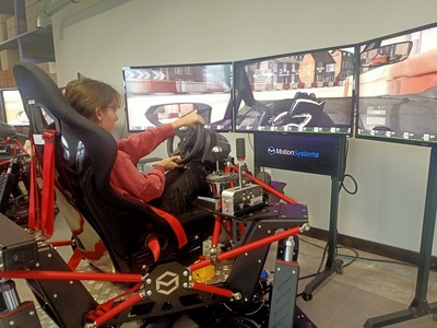 Ostatnie zajęcia to prowadzenie wyścigowego samochodu w symulatorze jazdy.