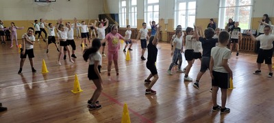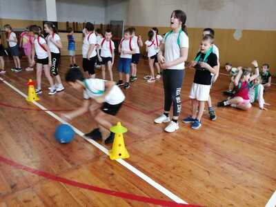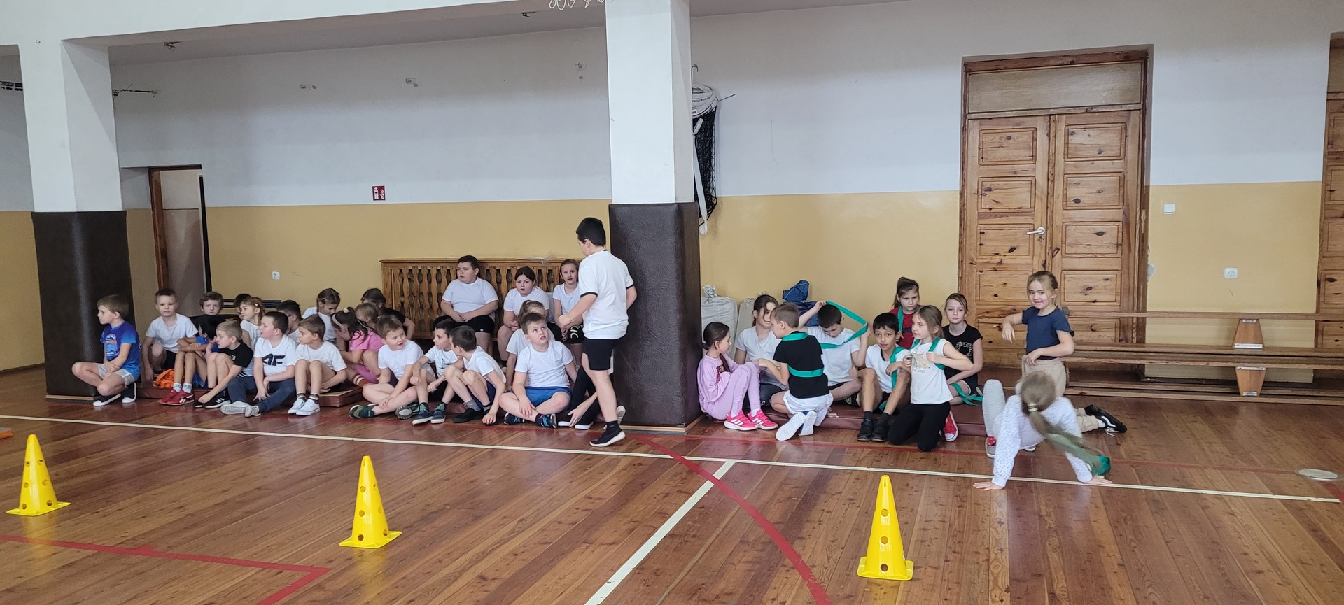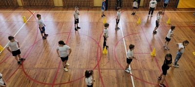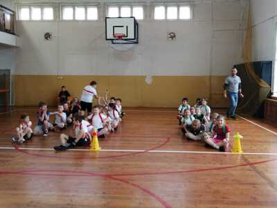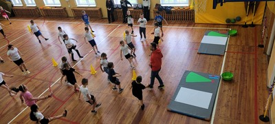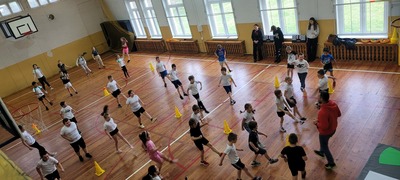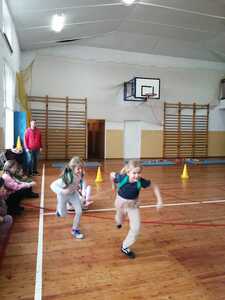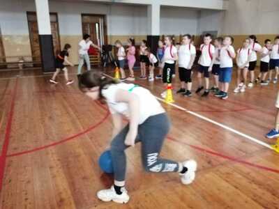 Żeby dobrze przygotować się do rywalizacji, dzieci wzięły udział w krótkiej rozgrzewce.