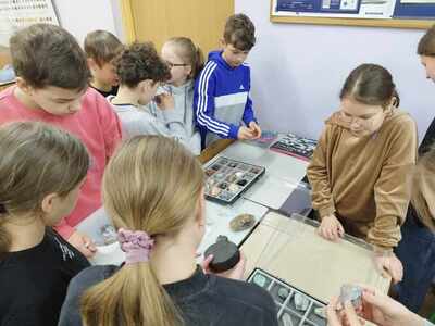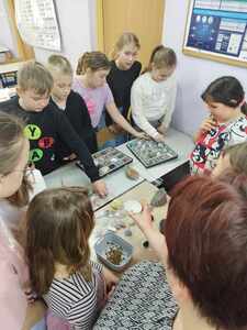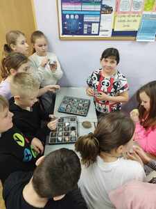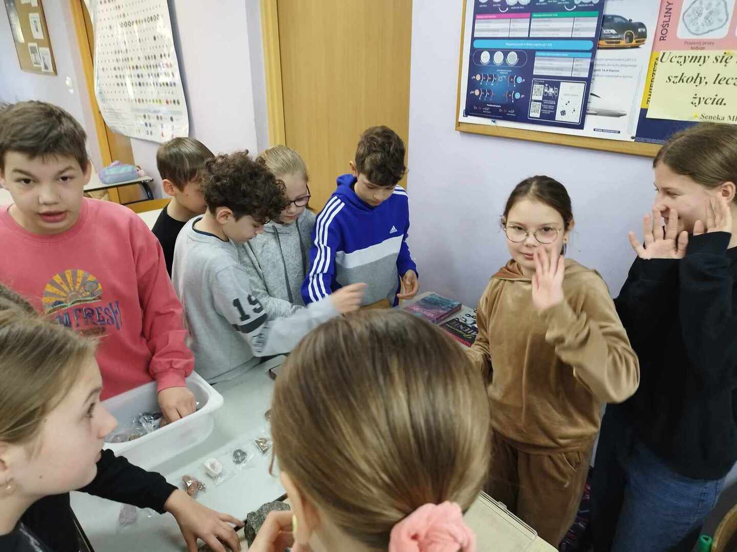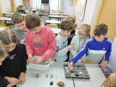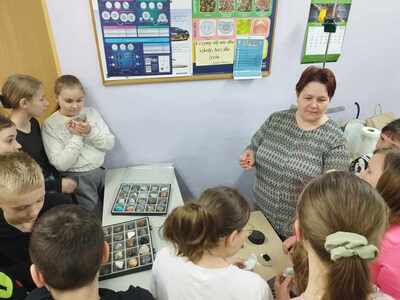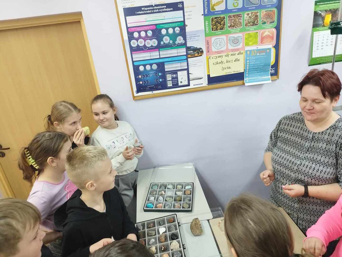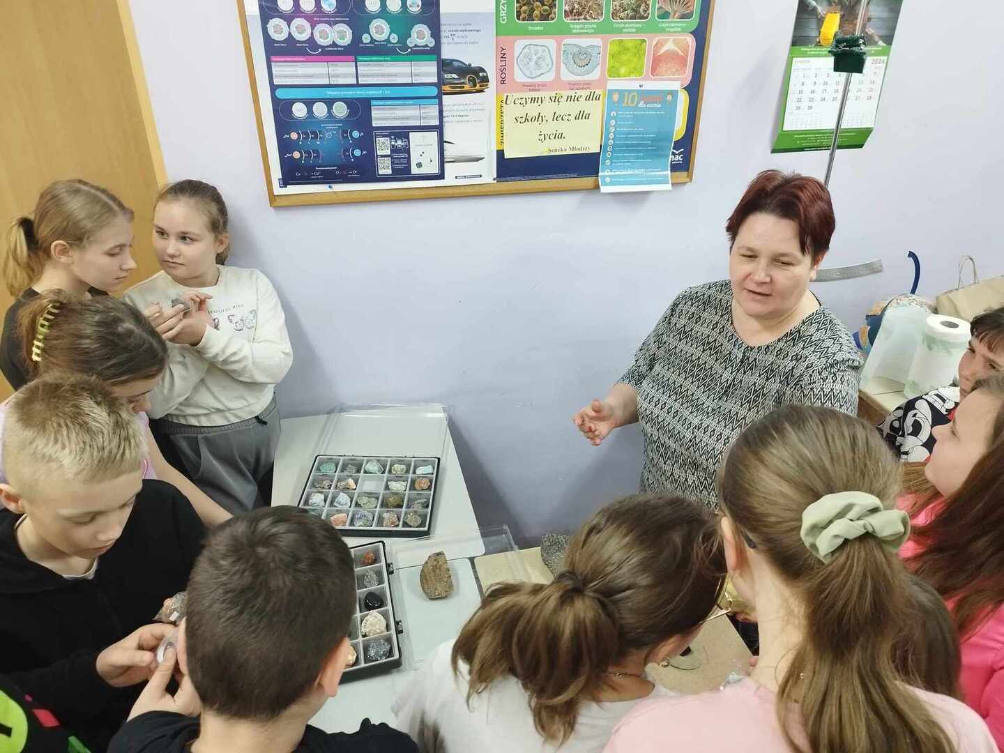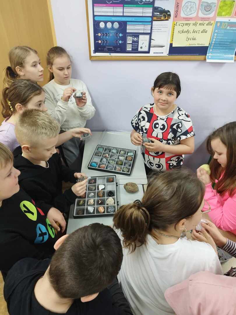 Jak interesujące mogą być lekcje przyrody, przekonali się uczniowie klas IV. Dnia 11 kwietnia poznali oni różne rodzaje skał i minerałów. Część z nich przynieśli uczniowie - Maria Rajek i Jan Szymański. Były to elementy ich zbiorów. Mimo że skał i minerałów wokół nas jest dużo, niecodziennie uczniowie mają okazję, aby ich dotknąć, poznawać ich wygląd i właściwości. Temat tak bardzo zainteresował uczniów, że być może pojawią się wśród nich kolejni zbieracze minerałów.