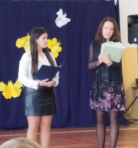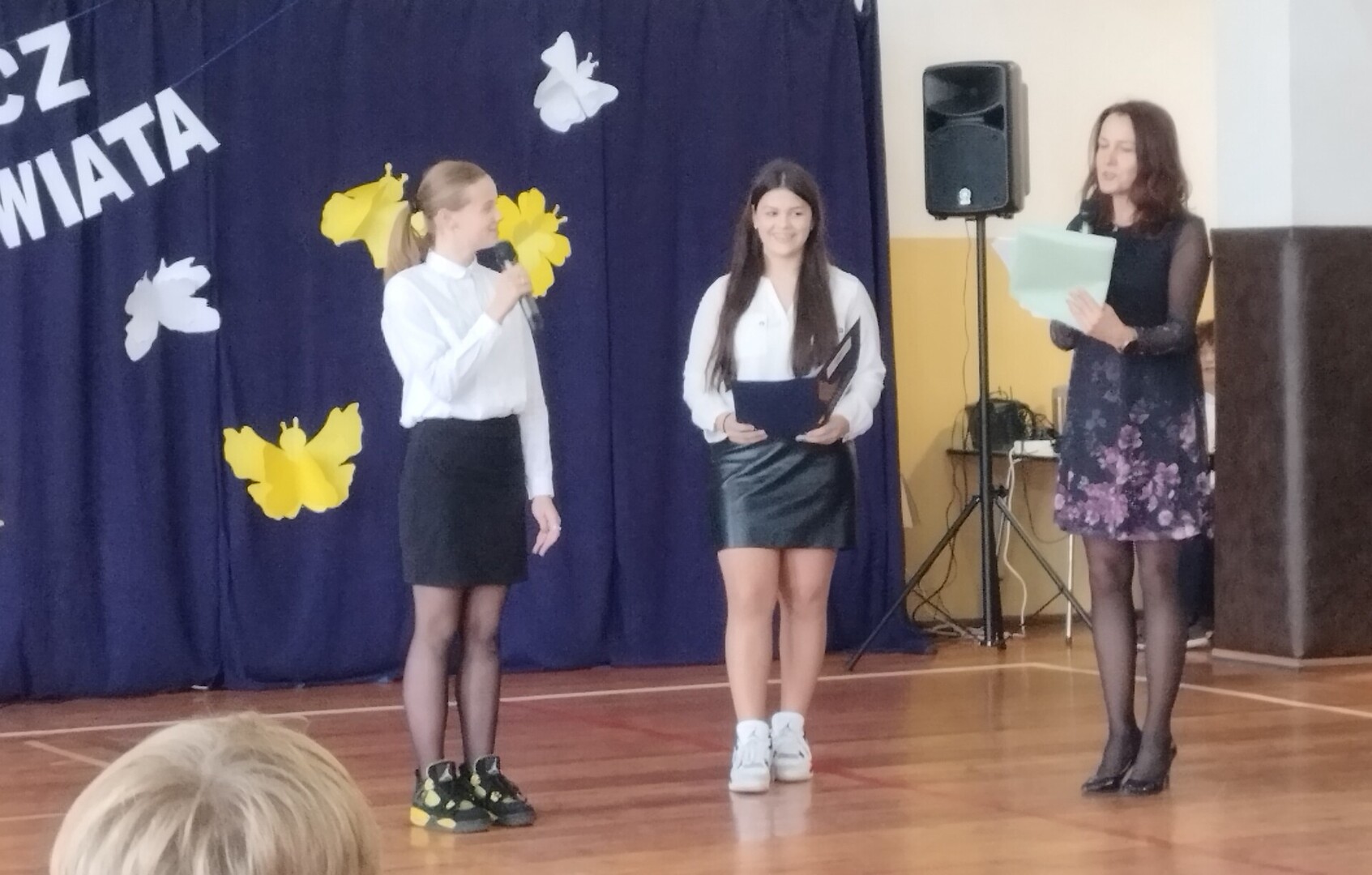Uroczystość prowadziła Zuzia Szlaga, która z dużą gracją i pewnością siebie zapowiedziała kolejne punkty programu. Po krótkim wprowadzeniu głos zabrał dyrektor szkoły, pan Robert Zimny. W swoim przemówieniu podziękował nauczycielom za ich codzienny trud i zaangażowanie w kształcenie oraz wychowywanie młodego pokolenia. Złożył także serdeczne życzenia wszystkim pracownikom, życząc im dalszej satysfakcji z wykonywanej pracy oraz sukcesów zawodowych.